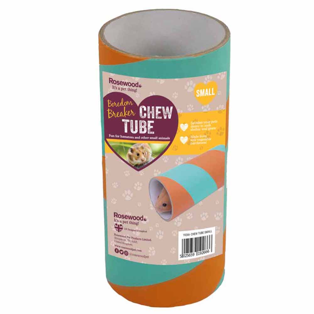 Keep your small pets entertained with this Rosewood Hamster Chew Chube. This boredom breaker tunnel can be used as a tunnel for smaller pets or stuffed with hay for larger ones. With super thick and tough parchment tubes, it's ideal for play and destroying!