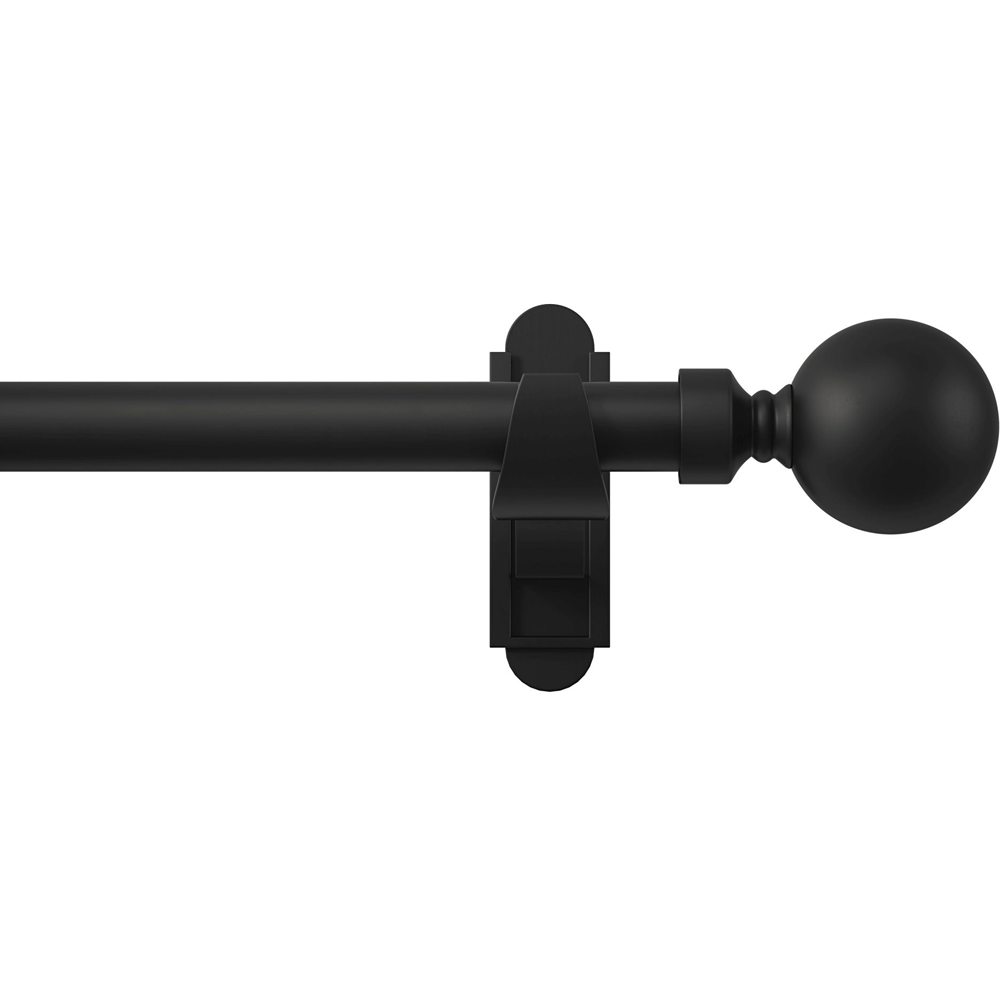 Rothley 165-300cm Matt Black Extendable Solid Orb Finials Curtain Pole