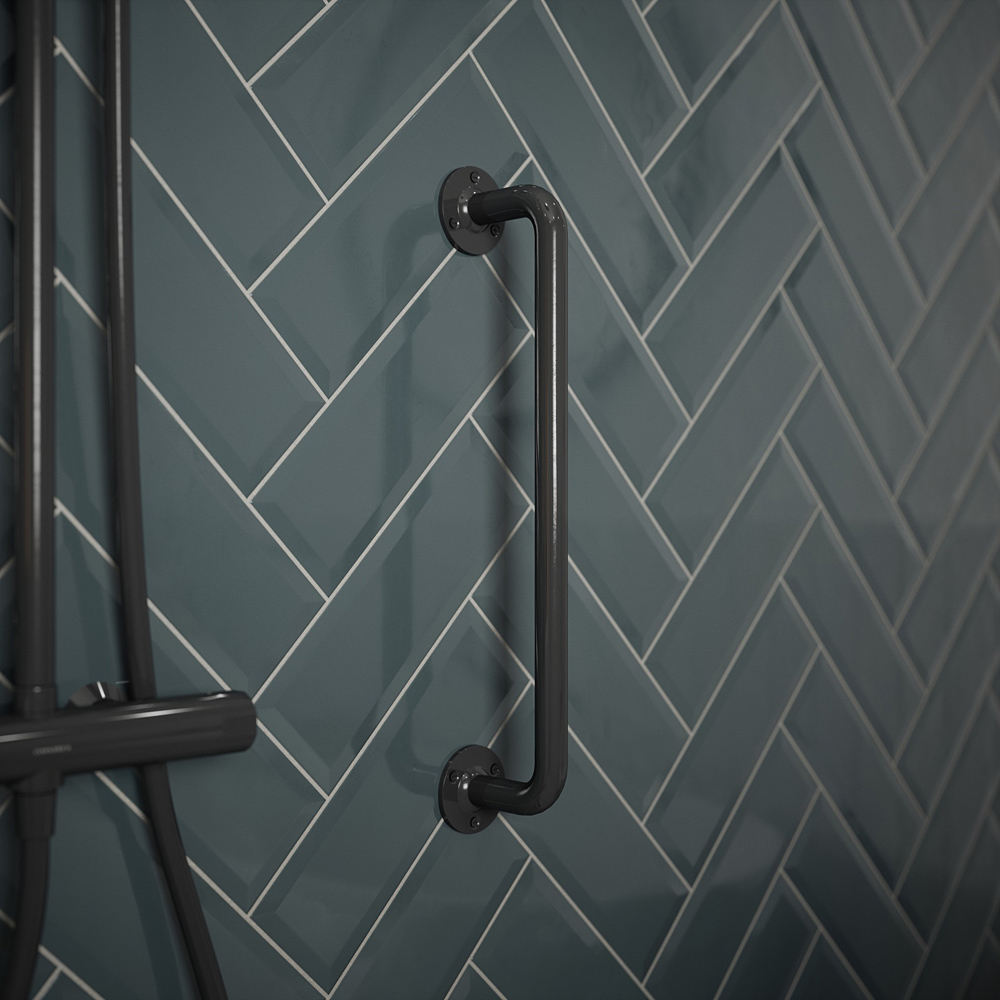 Give your space a touch of style and practicality with this Rothley Gunmetal Grab Rail. This durable grab rail features a modern finish and comes with visible fixings, making it stylish and easy to install. Suitable for private and commercial buildings, it's ideal for offering assistance in bathrooms and outdoor spaces. Size: 25 x 457mm. Max 110kg load when fitted to a solid wall. Projection from wall: 100mm.