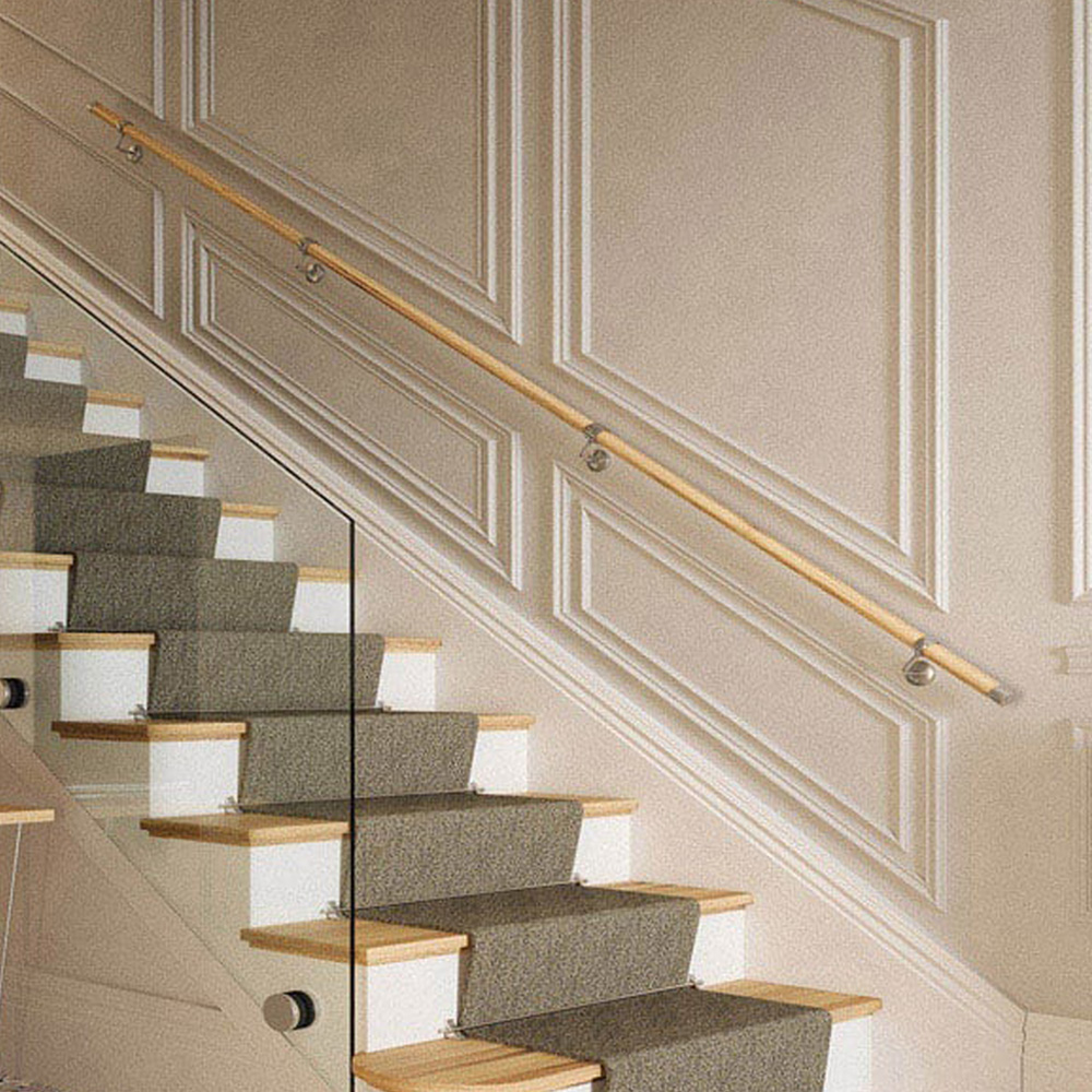 Add a rustic and functional touch to your staircase with the Rothley Pine Wood Stair Handrail Kit 3.6m. This sleek handrail kit is crafted using sturdy wood and metal for durability and longevity. This kit is easy to assemble with no need to drill and can be cut to the desired length with a simple hacksaw or jigsaw. This handrail kit is tested by FIRA ensuring high quality standards and is ideal for all types of interior spaces.