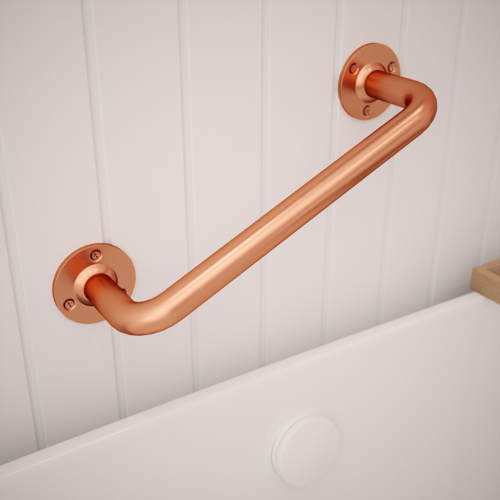 Give your space a touch of style and practicality with this Rothley Polished Copper Grab Rail. This durable grab rail features a modern finish and comes with visible fixings, making it stylish and easy to install. Suitable for private and commercial buildings, it's ideal for offering assistance in bathrooms and outdoor spaces. Size: 25 x 305mm. Max 110kg load when fitted to a solid wall. Projection from wall: 100mm.