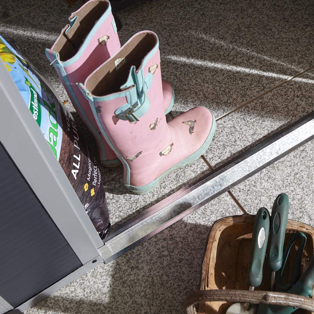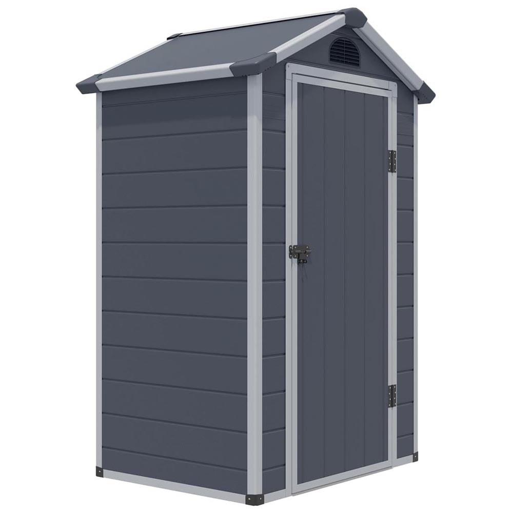 Keep your garden essentials dry and protected with the Rowlinson Airevale 4x3 plastic shed. The plastic shed is an attractive, durable and low-maintenance alternative to a traditional timber shed. It features a lockable door for security, gable vents for better air circulation, one side window, and a UV-protected Polypropylene construction. Apart from a UV-treated polypropylene for extra strength the shed also comes with a 12mm twin-wall fluted panel construction. The Airevale shed is pre-painted in light grey with dark grey trim and is available in different sizes. Perfect for storing your garden equipment, the eco-friendly shed is highly durable and made from 100% recycled plastic. Size: 4 x 3 feet.