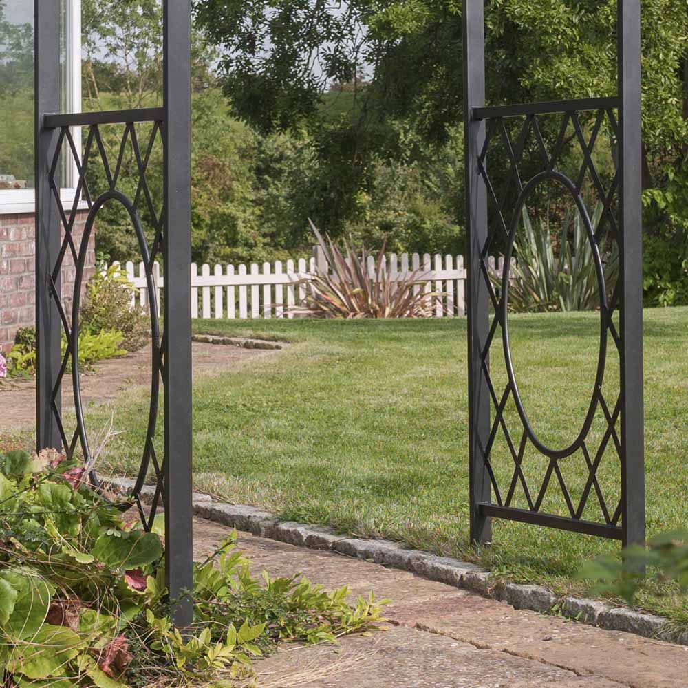 The Rowlinson Wrenbury Round Top Arch is a modern and contemporary steel version of a classic garden arch. It features an attractive lattice detailing finished in a striking gunmetal grey. This powder-coated frame arch will give your garden a modern and classy feel.