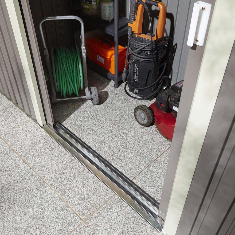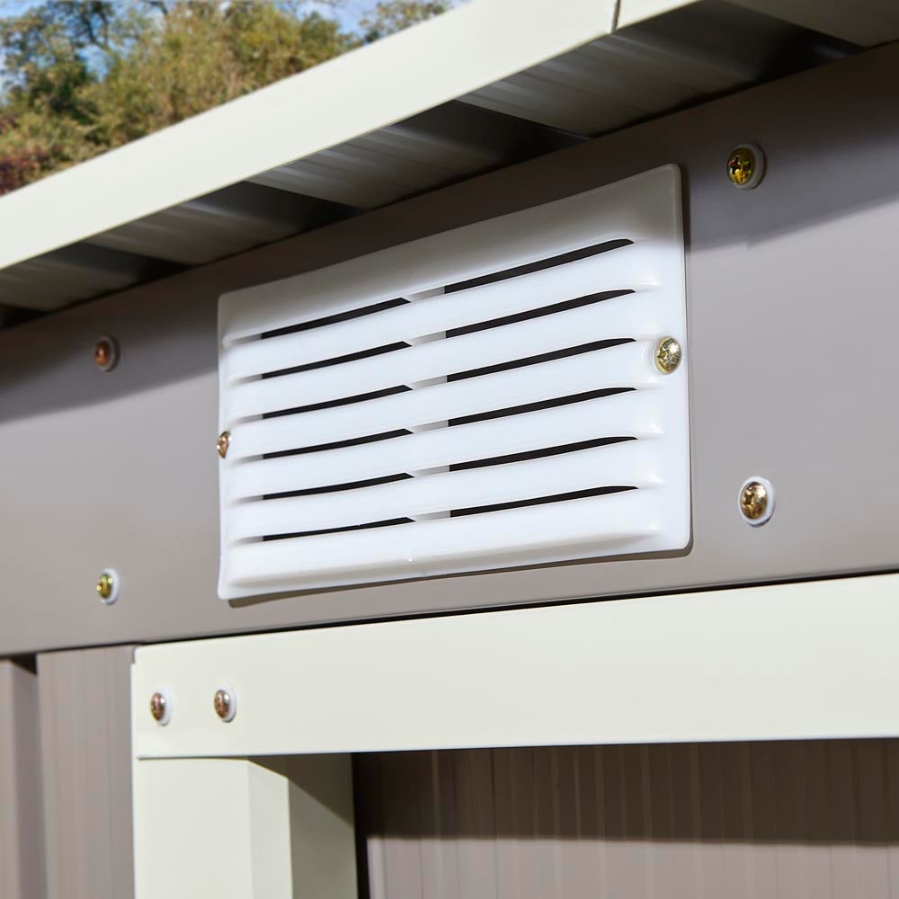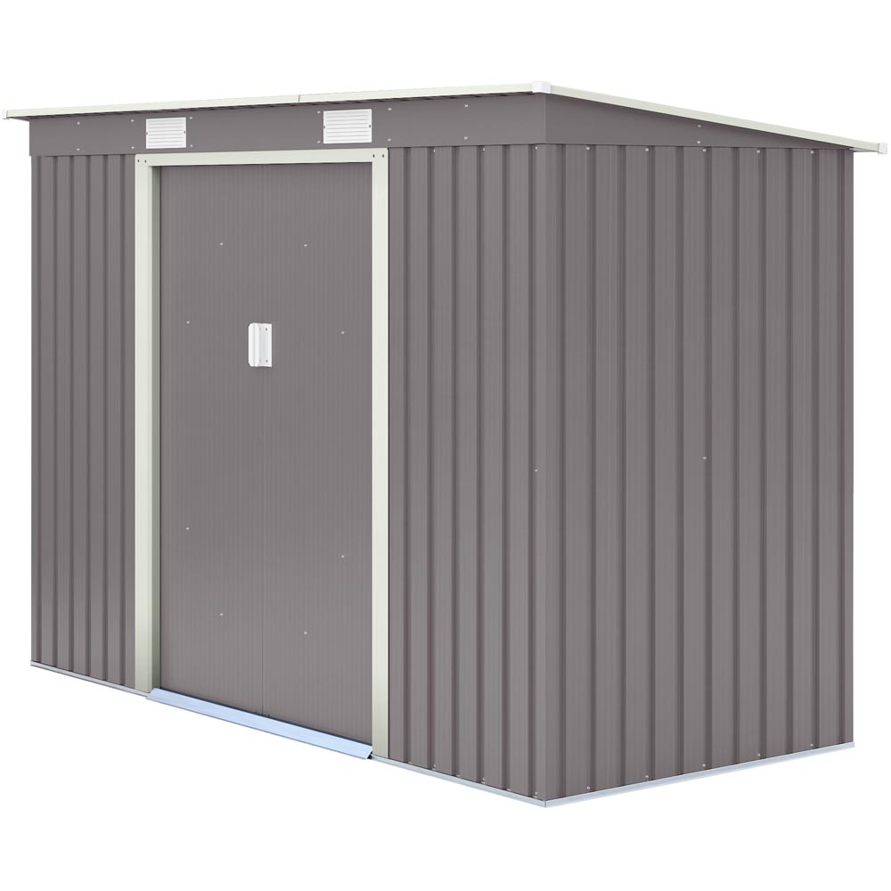 Keep your garden equipment dry and protected with this Rowlinson Trentvale 8 x 4ft pent metal shed. The metal shed is an attractive, durable and low-maintenance alternative to a traditional timber shed. The metal shed features a double sliding lockable door for security and gable vents for better air circulation. Trentvale metal shed has plenty of room inside, making it perfect for storing all your equipment. The metal shed is fire and rot-resistant, providing additional peace of mind knowing that your garden valuables are safe and protected. Trentvale metal shed is pre-painted in light grey with off-white trim and is available in different sizes. The shed demands low maintenance. 0.25mm Cladding thickness (metal + plastic sheds only). Internal dimensions: H1710 x W2510 x D1100mm. Door: H1570 x W1090mm.