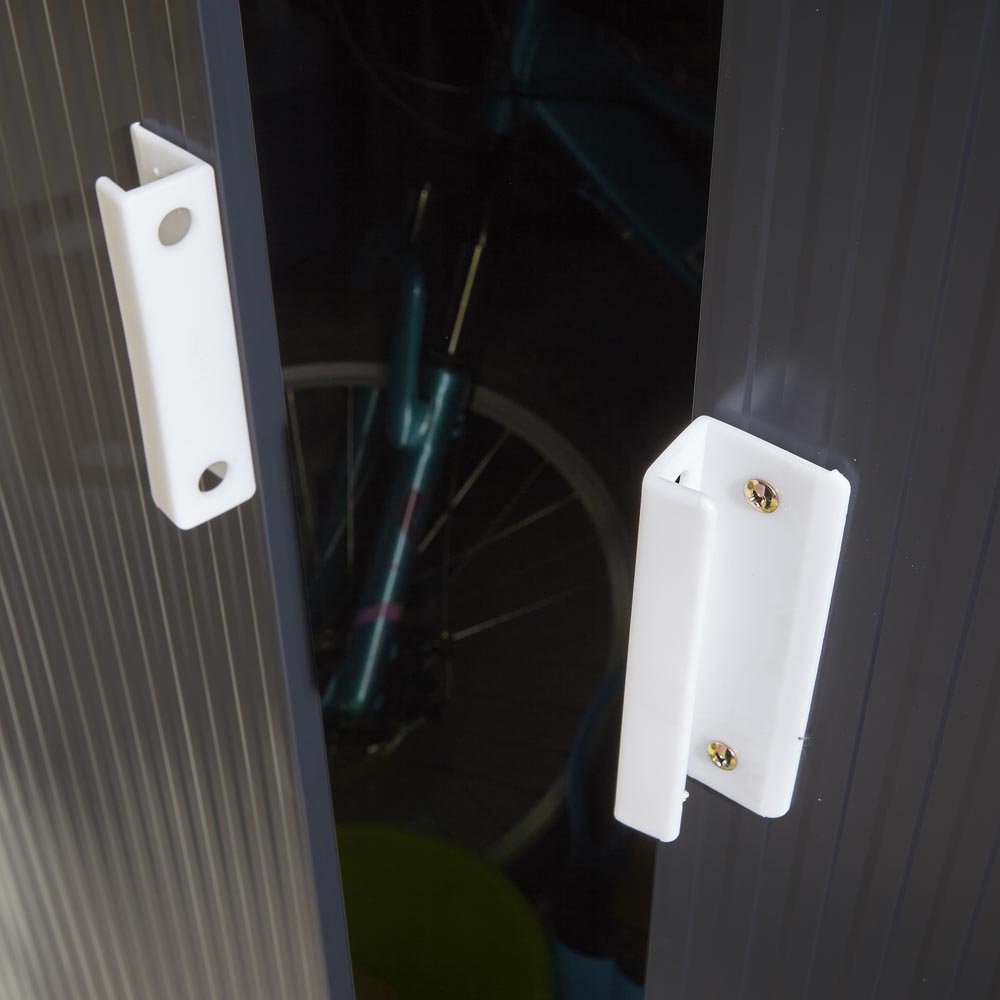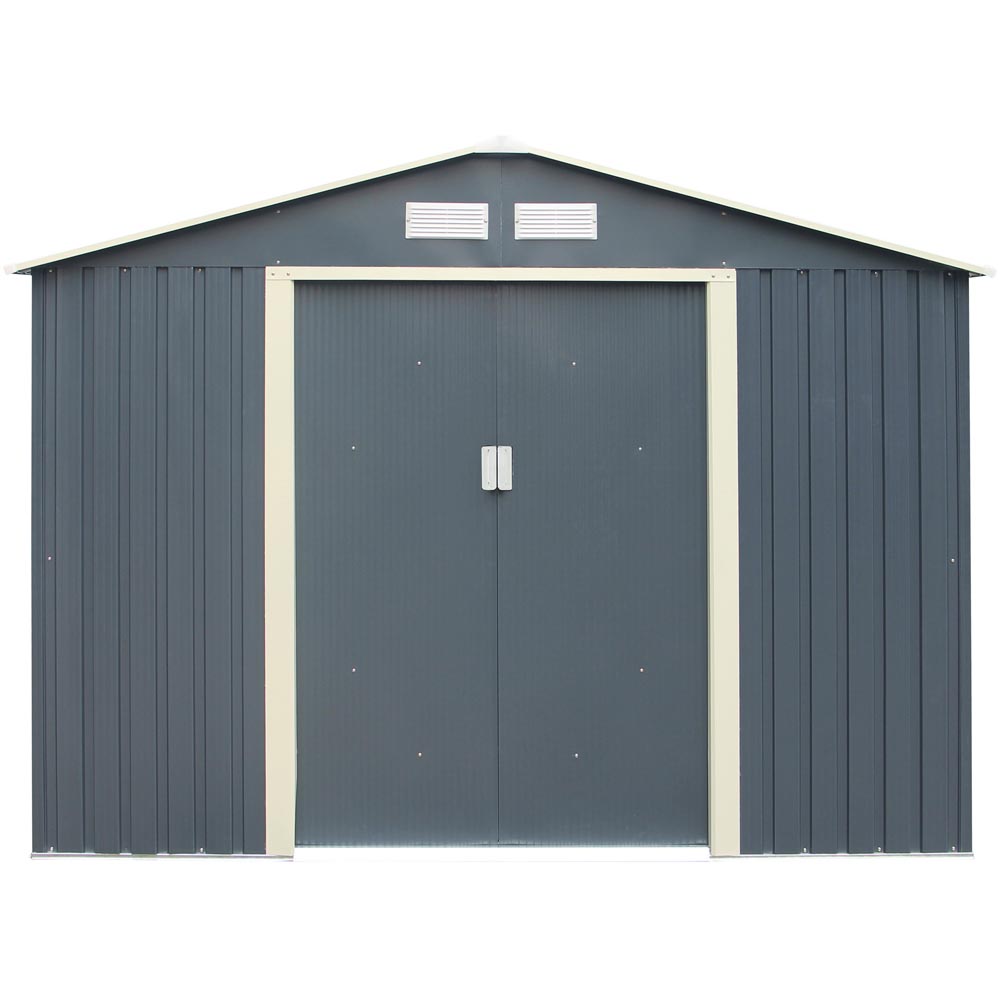 Keep your garden equipment dry and protected with this Rowlinson Trentvale 8 x 6ft metal apex shed. The metal shed is an attractive, durable and low-maintenance alternative to a traditional timber shed. The metal shed features double sliding lockable doors for security and gable vents for better air circulation. Trentvale apex shed has plenty of room inside, making it perfect for storing all your equipment. The metal shed is fire and rot-resistant, thus providing additional peace of mind knowing that your garden valuables are safe and protected. Trentvale metal shed is pre-painted in dark grey with off-white trim and is available in different sizes. The shed demands low maintenance. 0.25mm Cladding thickness (metal + plastic sheds only). Internal dimensions: H1880 x W2510 x D1710mm. Door: H1570 x W1090mm.