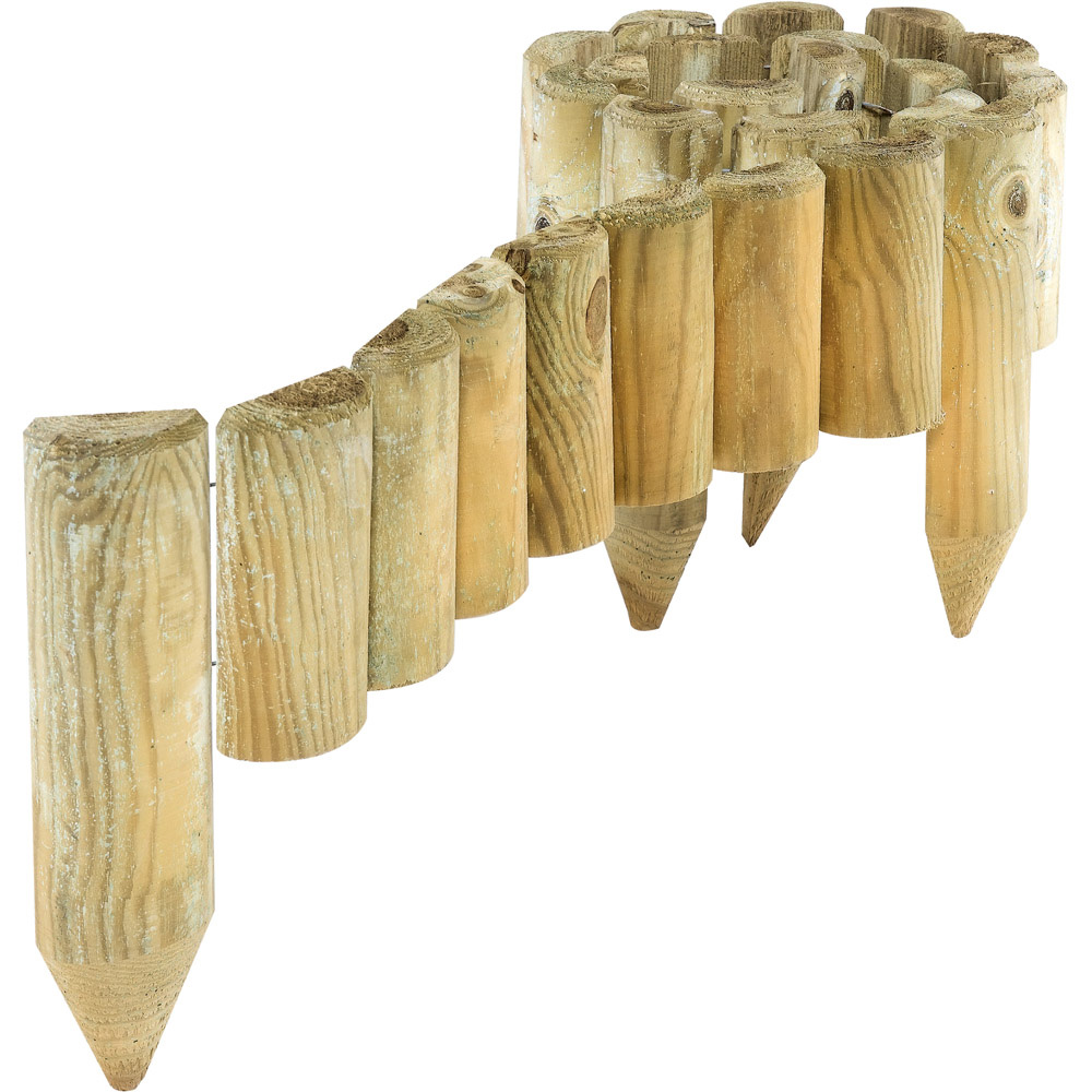 Indulge in the art of outdoor sophistication with this Rowlinson Easy Fix Spiked Border Roll, a quick and easy way to create attractive pathways and borders in your garden. The innovative timber spikes make installation painless, requiring no additional fixing pegs. Each roll measures 1.8m and is supplied in its natural timber finish, which will enhance the look of any garden. Pack of four.