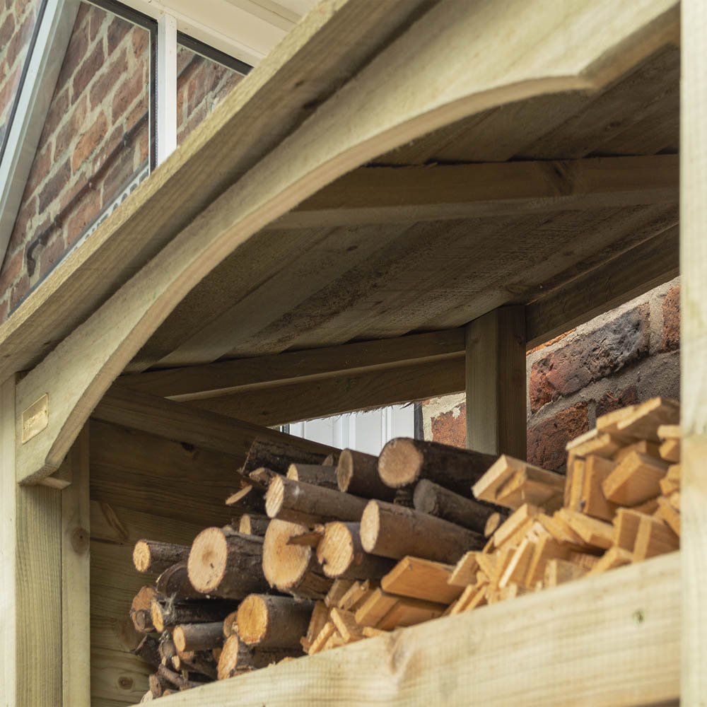 Store logs safely in the Rowlinson Single Timber Wood Premium Heritage Log Store. If you have a log burner, fire pit or chiminea, you will know the importance of using only kiln-dried or well-seasoned logs to ensure maximum burn efficiency. This elegantly designed log store with its arch fascia and fine sawn detailing, will not only make an impressive feature of your log storage, it will also keep logs in perfect condition ready for use when necessary. Also, the large storage capacity can easily hold a double row of logs up to 270mm long. The handy shelf can be positioned at any height within the store and is ideal for sticks and kindling. Plus, the heavy-duty timber construction is pressure-treated against rot for long-life protection against the elements. Capacity: 700L.