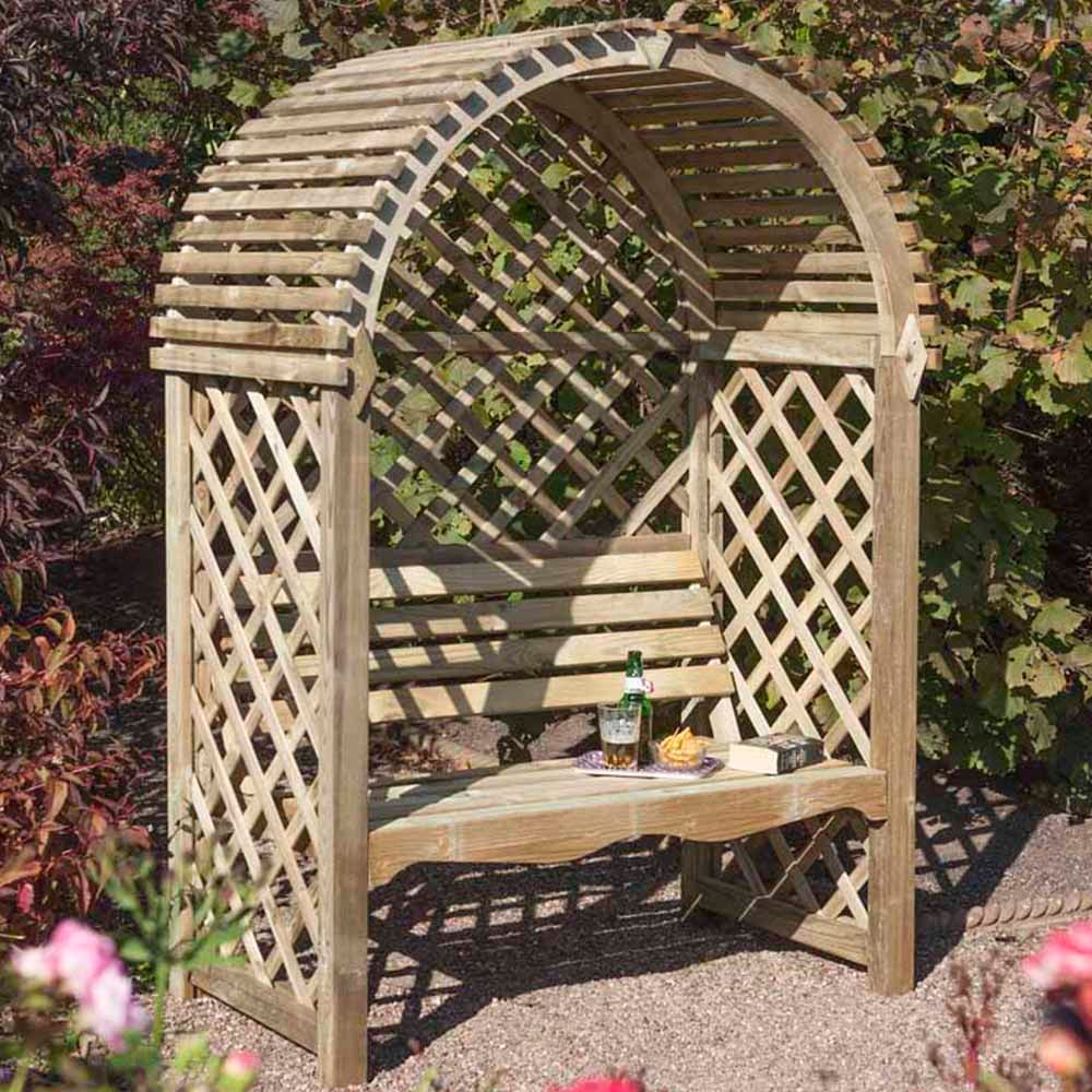 Enhance your garden with the classic charm of the Rowlinson Victoria Arbour with open lattice sides and back, and a round open slatted roof. Feel close to nature as your read a book or just relax in this shady arbour.