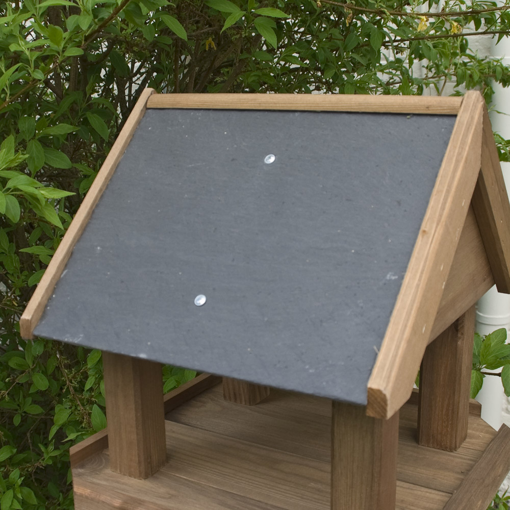 Invite winged wonders to dine in style with this Rowlinson Windrush Bird Table. Constructed from sturdy softwood with a two-sided slate apex roof, this bird premium quality table has minimal assembly due to its pre-assembled table top. This delightful bird table will make a great addition to your garden, and you can enjoy visits from many species of birds.