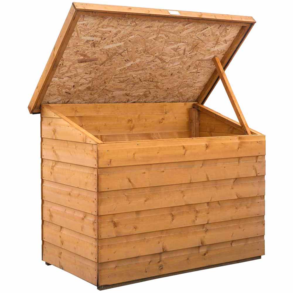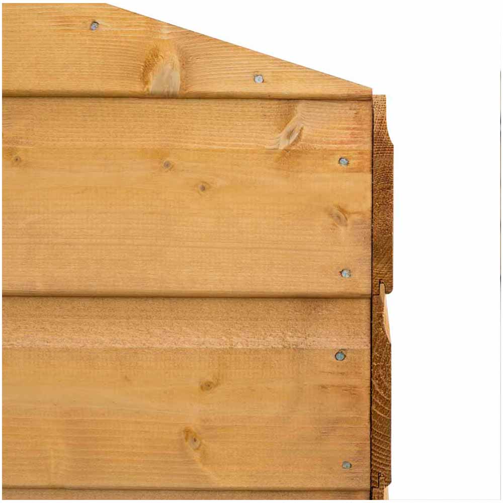 Ensure that all of your garden tools and supplies are perfectly stored with this Rowlinson Shiplap Patio Chest. It features a lifting lid with a stay to hold it open, and a solid board roof for strength. Finished in an attractive honey brown, the patio chest offers an attractive and practical storage solution.