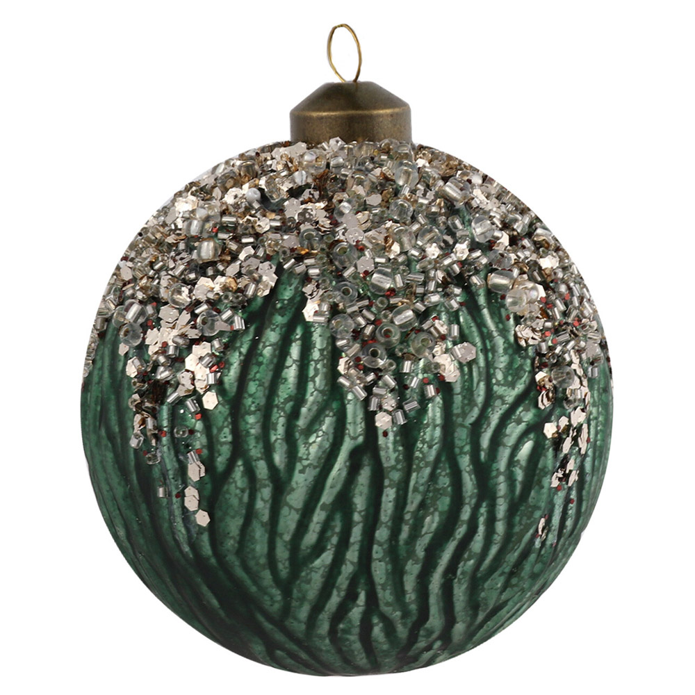 Bold and sure to make a statement, the Royal Emerald Mottled Green Embellished Christmas Bauble is ideal for those looking to add a touch of contemporary glamour to their tree this Christmas. The deep, green glass bauble carries an attractive mottled design with glitter accents; this dramatic bauble is guaranteed to take centre stage.