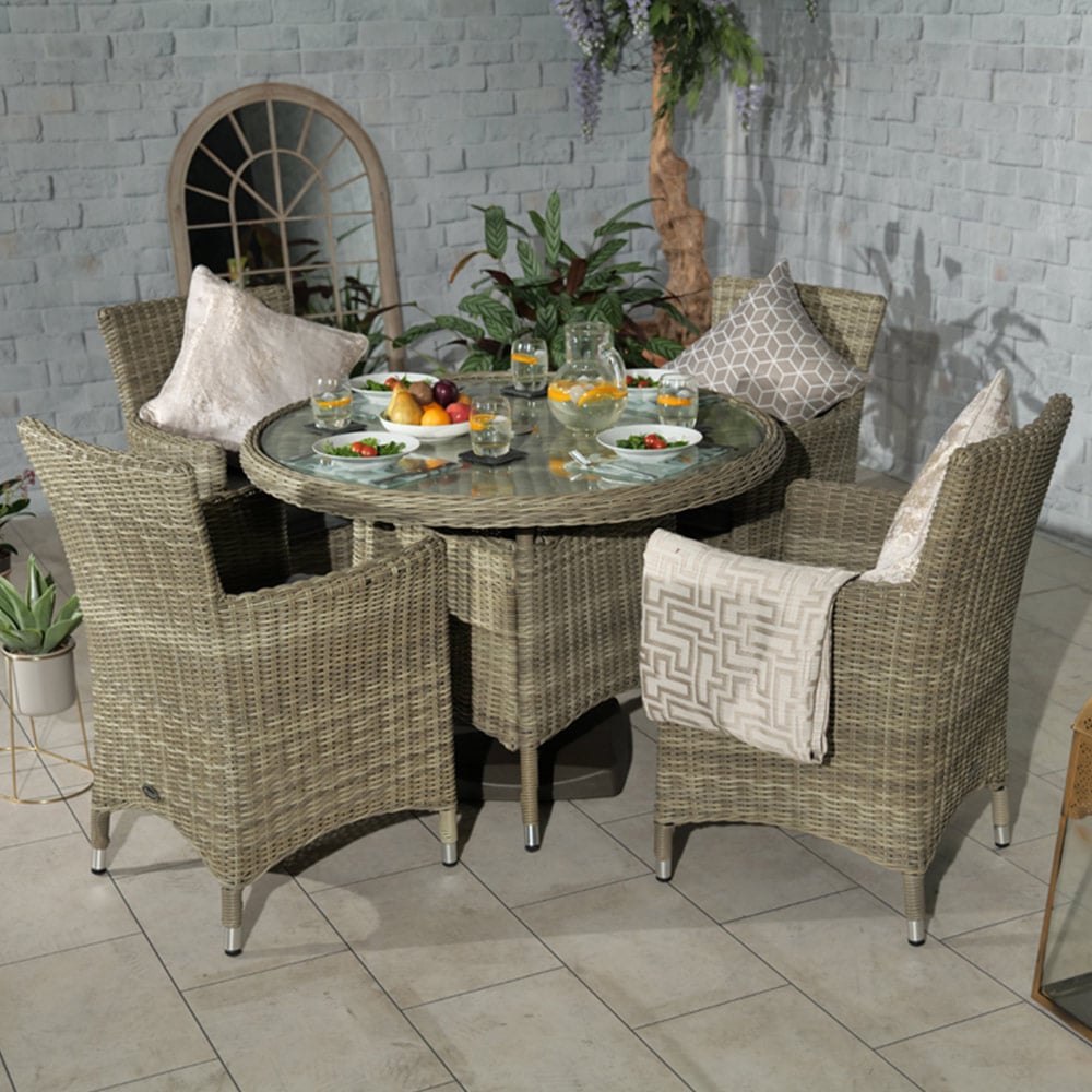 Royalcraft Wentworth Rattan 4 Seater Round Carver Dining Set