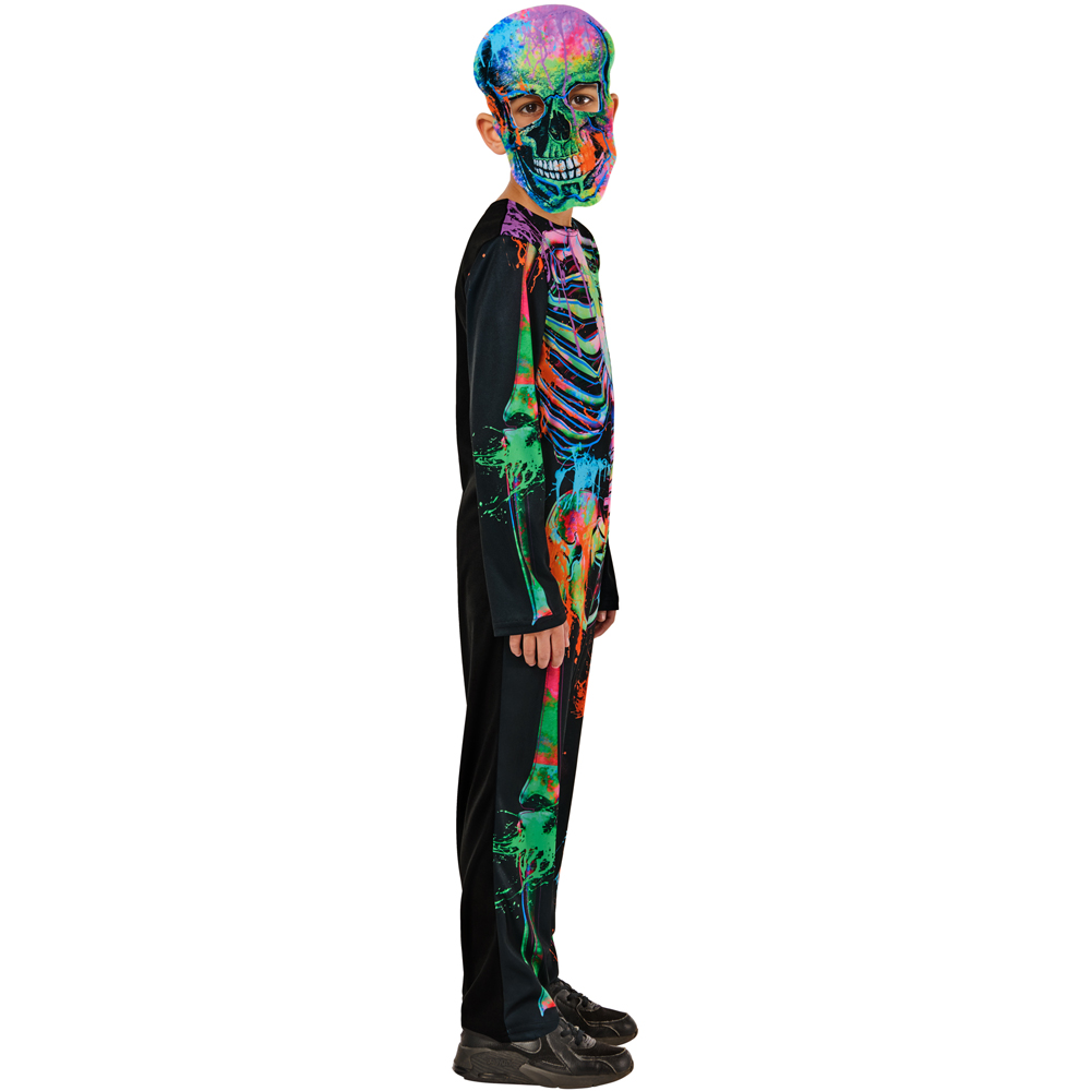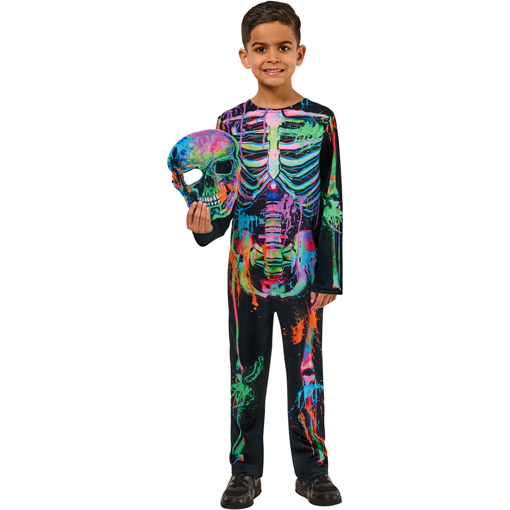Get spooky and groovy at the same time with the Rubies Masquerade Kids Bonesky Graffiti Skeleton Costume XXS. This costume features a skeleton design with vibrant, colourful graffiti prints, blending eerie and stylish elements for a standout look. It comes with a matching mask that completes the ensemble, adding an extra layer of fun and excitement. Perfect for Halloween or any fun event, this costume will make your little one stand out from the pack. With the vibrant and psychedelic graffiti design, it's a party guaranteed. The costume has undergone comprehensive safety testing where applicable, meeting all relevant regulations.