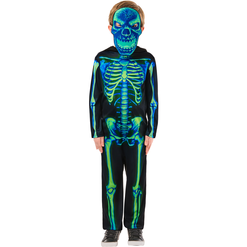 Breathe new life into your child's Halloween wardrobe with the Rubies Masquerade Kids Neon Green Skeleton Costume Small. This costume is designed to make your little one stand out, even in the darkest of rooms. The costume features a sleek and comfortable fit, allowing your child to move freely, whether trick-or-treating or dancing at a Halloween party. The glowing skeleton design is printed with precision, highlighting every bone in a bright neon green that glows in the dark. Perfect for Halloween or any festive fun event, this costume will make your child look like a classic skeleton with a twist. The costume has undergone comprehensive safety testing where applicable, meeting all relevant regulations.