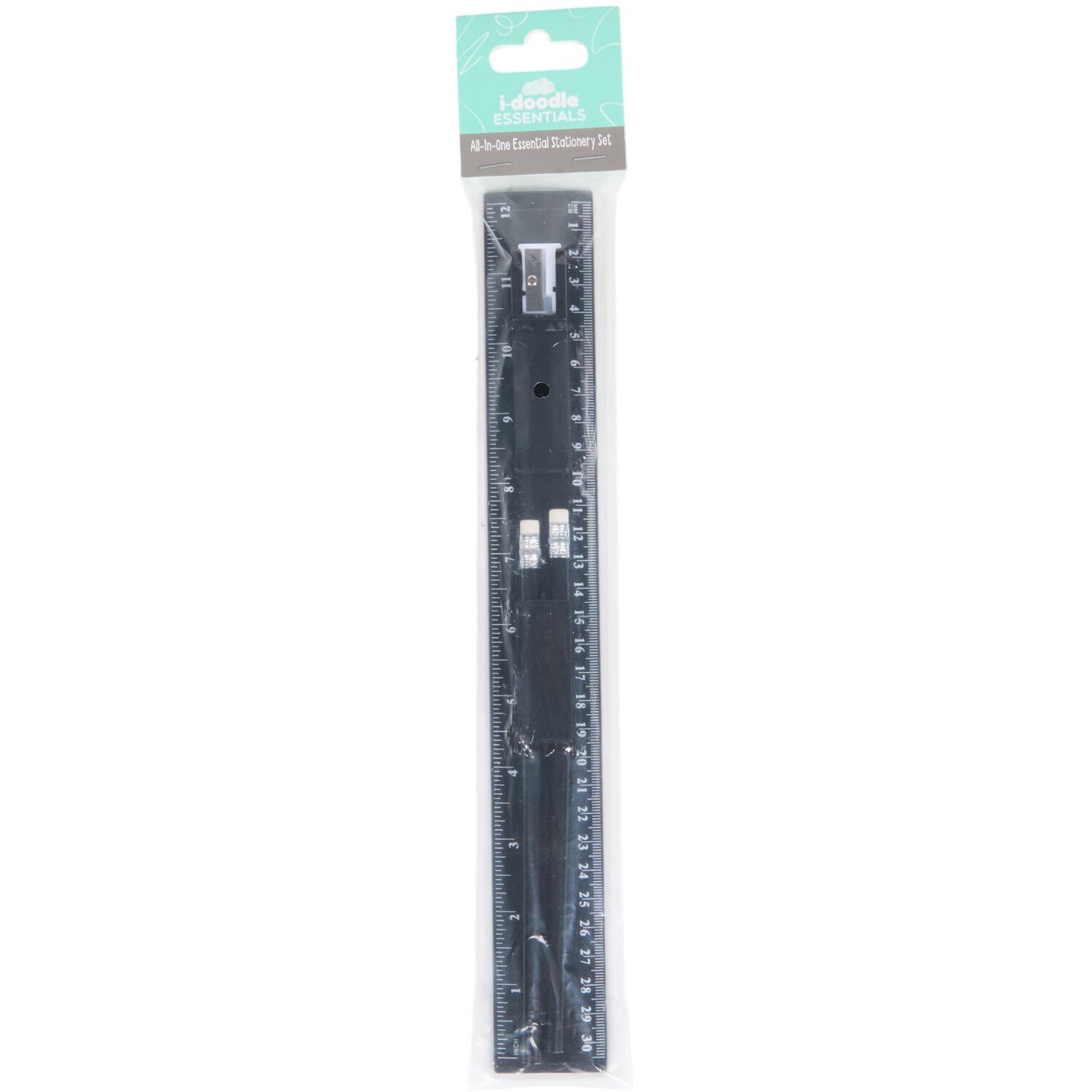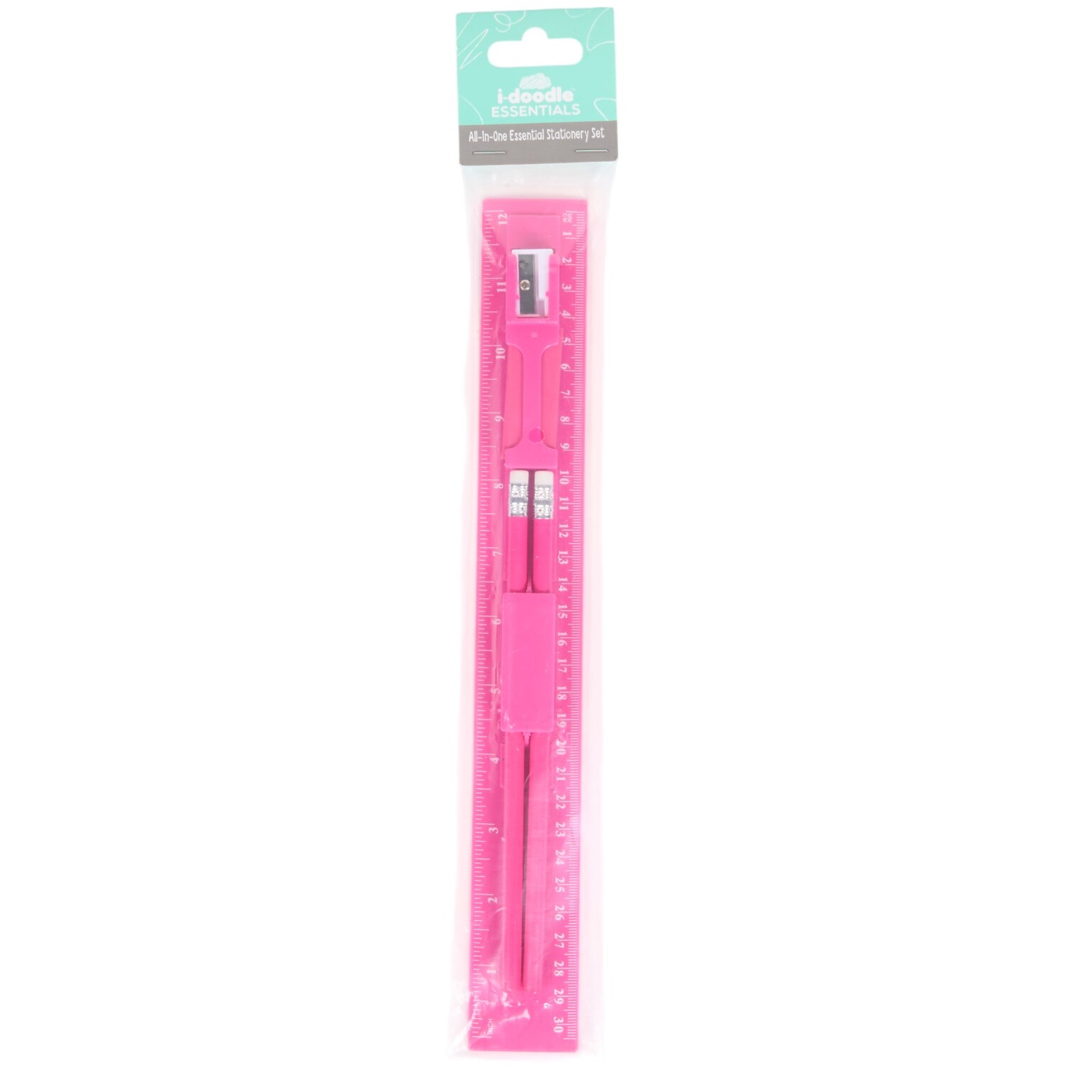 Make a practical addition to your school bag with the Ruler Sharpener and Pencil Set. This stationery set comes with a ruler, eraser, sharpener, and pencil- everything you need for school. Each piece features an ergonomic design that allows for easy use. Available in an assortment of colours, this set is a great back-to-school gift for kids.