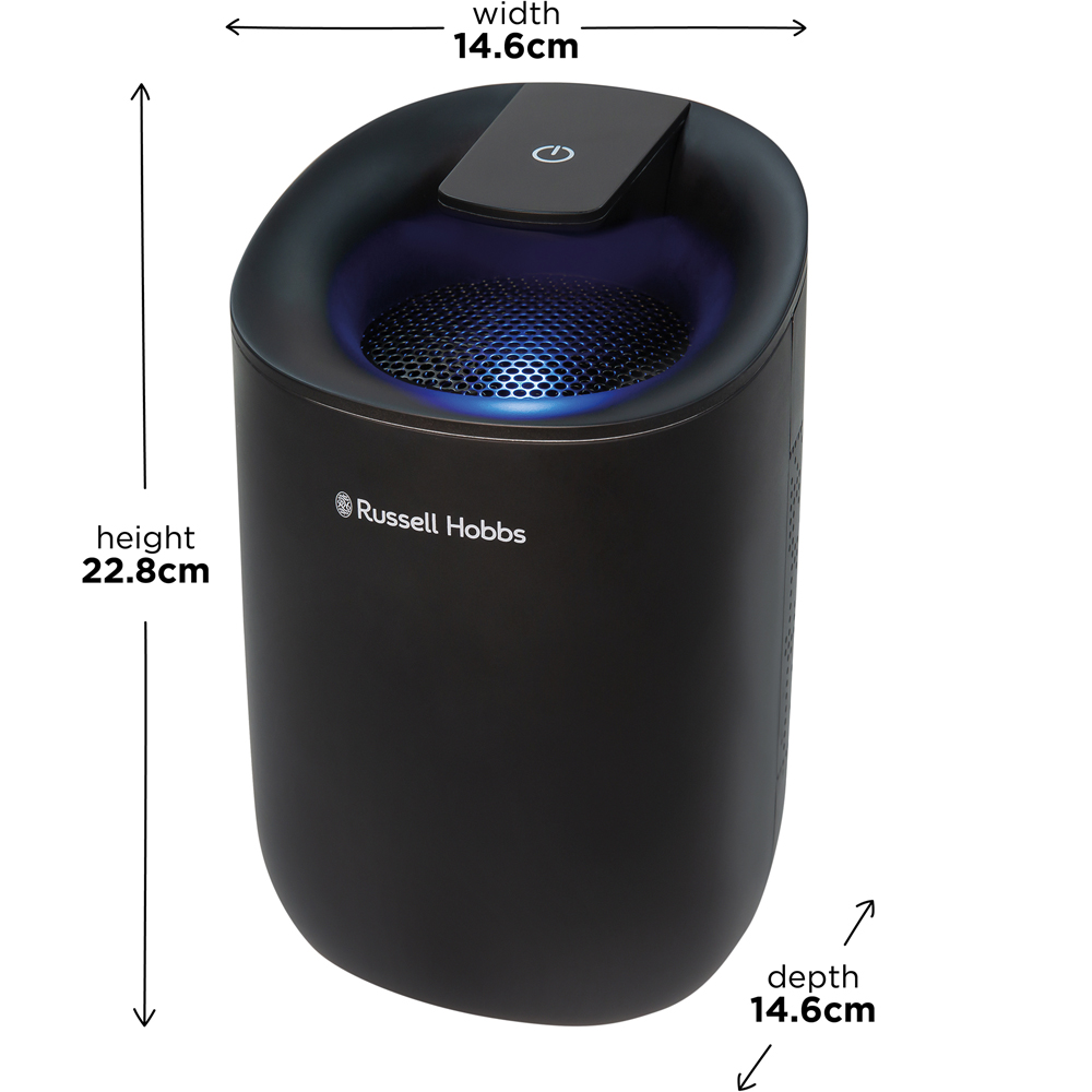 Add freshness and comfort to your space with Russell Hobbs Black Mini Compact Dehumidifier 300ml. This is an essential tool for maintaining optimal indoor conditions by reducing humidity and mitigating the effects of dampness and condensation. Designed for small spaces such as home offices, utility rooms, or compact living areas, this dehumidifier effectively prevents moisture-related issues during winter months. With a 600ml capacity, it covers areas up to 15m², making it ideal for smaller rooms. Its dimensions (22cm high and 14cm wide) allow convenient placement on desks, countertops, or windowsills. The sleek design, complemented by LED lighting, seamlessly integrates into your surroundings while efficiently extracting excess moisture. Weighing only 0.9kg, it’s easy to move between rooms, ensuring freshness and dryness throughout your home. The Fresh Air Mini features an easy-to-empty water tank and achieves a maximum extraction rate of up to 300ml per day. Operating this dehumidifier is straightforward, and its low-noise motor minimizes disturbances. Additionally, the auto cut-off function activates when the tank reaches capacity, allowing uninterrupted operation over extended periods. For colder nights, the defrost function prevents water from freezing on the internal elements. As a bonus, the product includes a one-year manufacturer guarantee, with the option to extend it to two years upon registration.