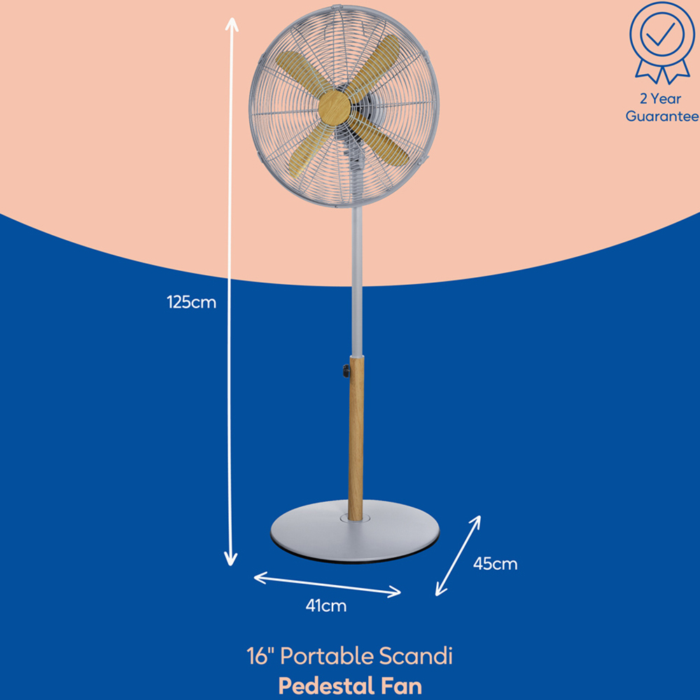 Russell Hobbs Grey and Wood Effect Scandi Pedestal Fan 16 inch