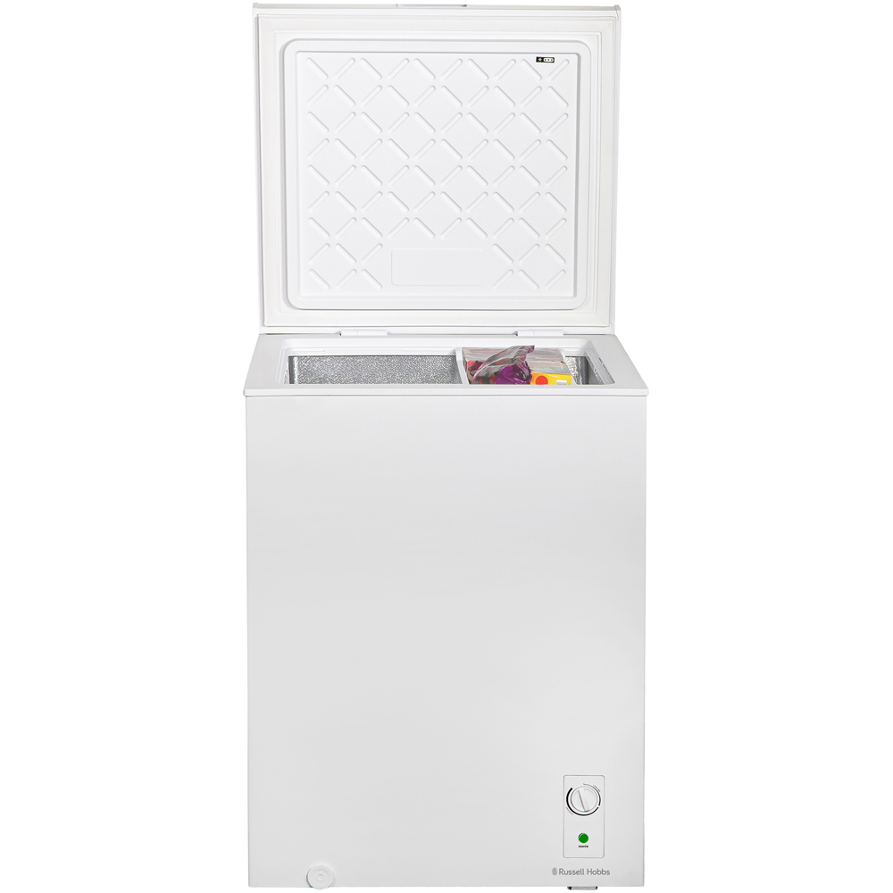 The Russell Hobbs 143L Chest Freezer is designed with practical living in mind. With storage space to fit up to seven bags of food shopping with ease, this freezer gives you the option to plan ahead with its ample storage capacity, such as being able to batch-cook meals for the whole family without worrying how you’re going to store them for the week. Plus, the handy removable wire basket means you can keep all your essentials within easy reach. With a built-in adjustable thermostat, you have the flexibility to set this freezer exactly how you want it to suit the contents of your freezer. Plus, there are adjustable feet to ensure your freezer is stable on any surface. This model also features a counterbalance lid, which means you can rummage without risking your fingers - once opened fully, the lid holds itself up. Perfect for households with limited space, this chest freezer is suitable for storage in your garage, outbuilding or shed. For added peace of mind, this Freezer comes with a 1-Year Guarantee, plus an extra 4 years upon registration. This way, in the unlikely event something goes wrong, you know we'll always be on hand to help.