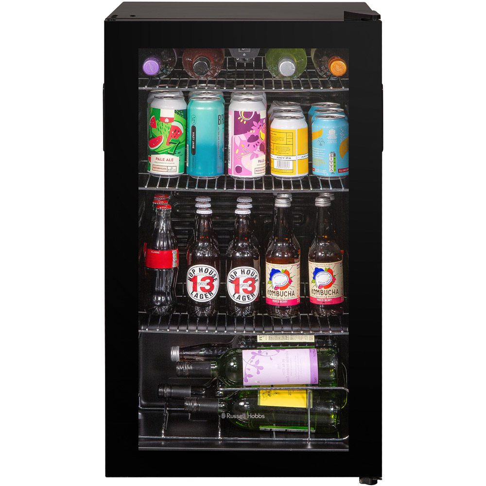 This impressive 93L freestanding wine, beer and drinks cooler is the perfect addition to your kitchen or entertainment area. With three removable shelves, and 1 wine shelf, it's easy to customise the cooler to your needs. Fully stocked, this cooler can hold up to four bottles of wine and 48 x 330ml cans, meaning its ideal for large families or those that love to entertain. With a stylish and contemporary design, this cooler will complement any setting and the quiet 39dB noise level won’t intrude on your party atmosphere either. The sleek black door comes with a tempered glass window, so that you can easily see what’s inside without opening the door and the handy LED light will help you to quickly find your chosen tipple. The adjustable thermostat has an impressive temperature range from 2°C - 15°C, so you can precisely adjust the temperature to suit the contents of your cooler. Plus, this cooler comes with adjustable feet so that you can place it wherever you like it, without any hassle. For added peace of mind, this Russell Hobbs appliance comes with a 1-Year Guarantee, plus an extra year upon registration. This way, in the unlikely event something goes wrong, you know we'll always be on hand to help.