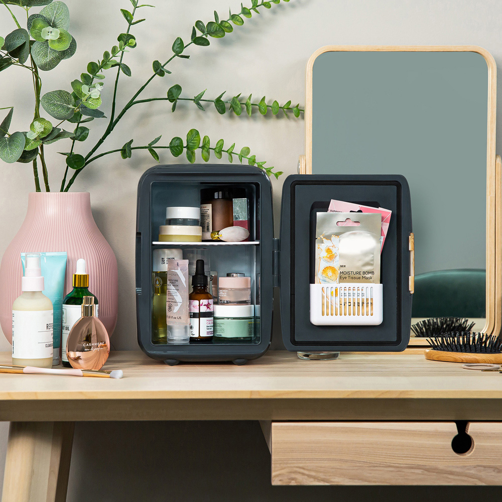 Keep your drinks and cosmetics safe with the Russell Hobbs RH4CLR1001SCG Grey and Wood Effect 4L Mini Cooler. This compact cooler with a classic design can be placed neatly in any interior space of your choice. This appliance has 4L space to fit six 330ml drink cans or a few of your favourite snacks. It is ideal for storing cosmetics, with a handy pocket on the inner door for your favourite face masks. The lightweight 2kg design with a door latch and a foldable carry handle makes this mini cooler highly portable for your convenience. It can also be used as a warmer - just heat up to 65°C with a quick flick of a switch to keep your pastries or paninis warm. It includes AC and DC car cables which make this cooler perfect for camping, caravanning and family days out. This compact cooler comes with a one-year guarantee for added convenience.