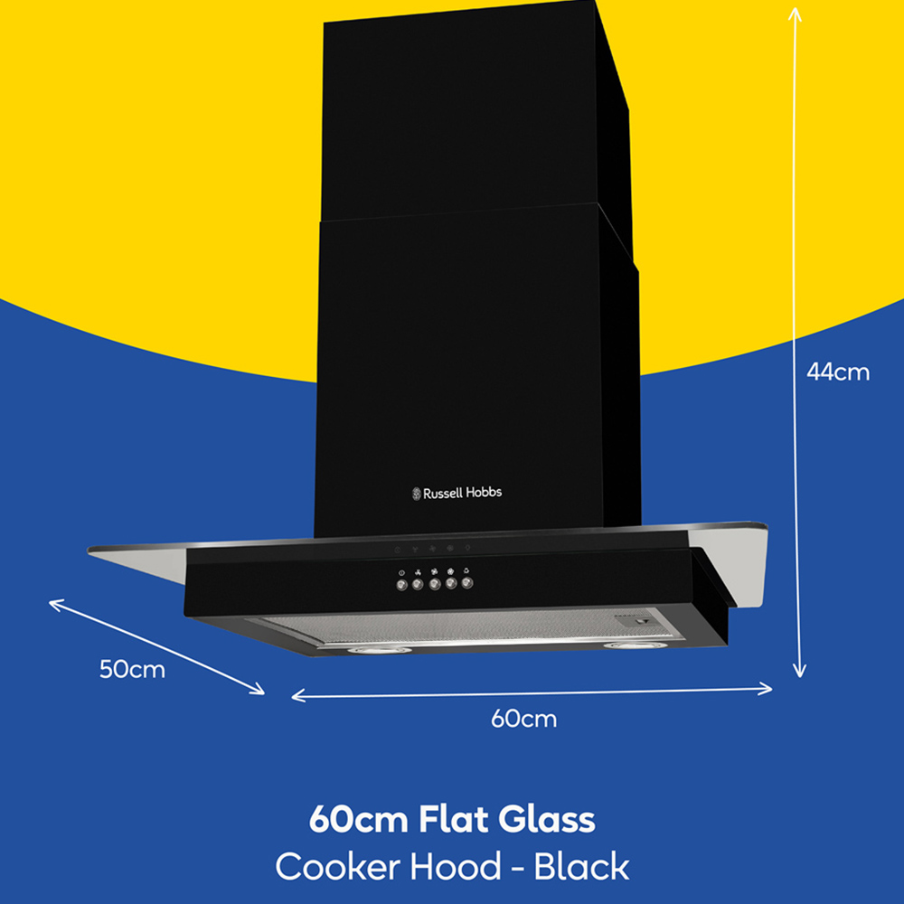 Level up your chimney game with Russell Hobbs RHFGCH601B Black 60cm Cooker Hood. Easy to clean, it is designed to be functional and efficient. It perfectly complements any style of kitchen, adding a touch of elegance. From stew simmering to frying fish or meats on a high heat, there’s no need to worry about lingering smells. The chimney is perfect for medium-sized kitchens with a maximum output air extraction of 440m³/h. It features three-speed settings to quickly clear and clean the air of steam and cooking fumes. The cooker hood fits perfectly over a standard 60cm wide hob. It works like magic to clear the air with the simple touch of a button. Suiting your best needs, you can choose an external extraction or recirculation set-up for your cooker hood. The cooker hood comes with two handy charcoal filters for internal circulation. These two must be replaced every three months. The durable and easy-to-maintain aluminium grease filter is small enough to fit in a dishwasher for easy cleaning. The hood also features two energy-efficient cool white LEDs to help illuminate your hob whilst cooking your favourite meals. This Russell Hobbs cooker hood comes with a one-year guarantee with an additional year upon registration. The extended warranty can be purchased for unlikely events.
