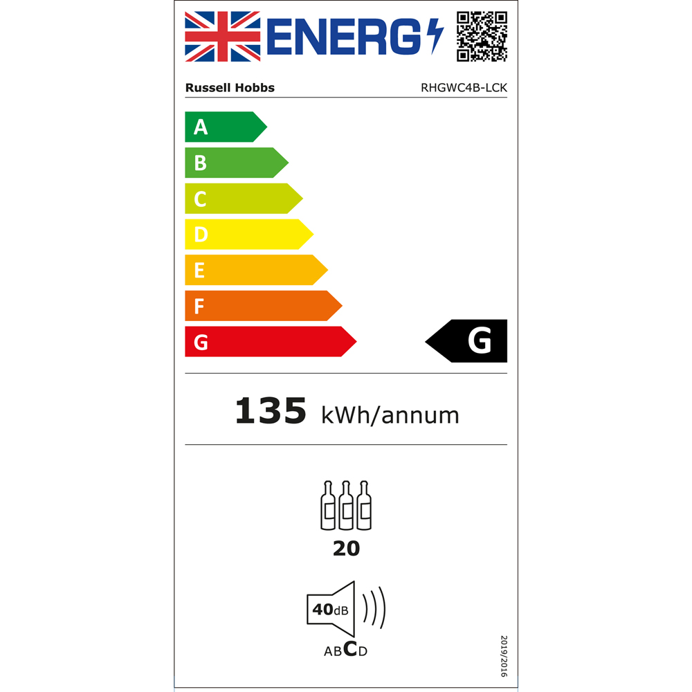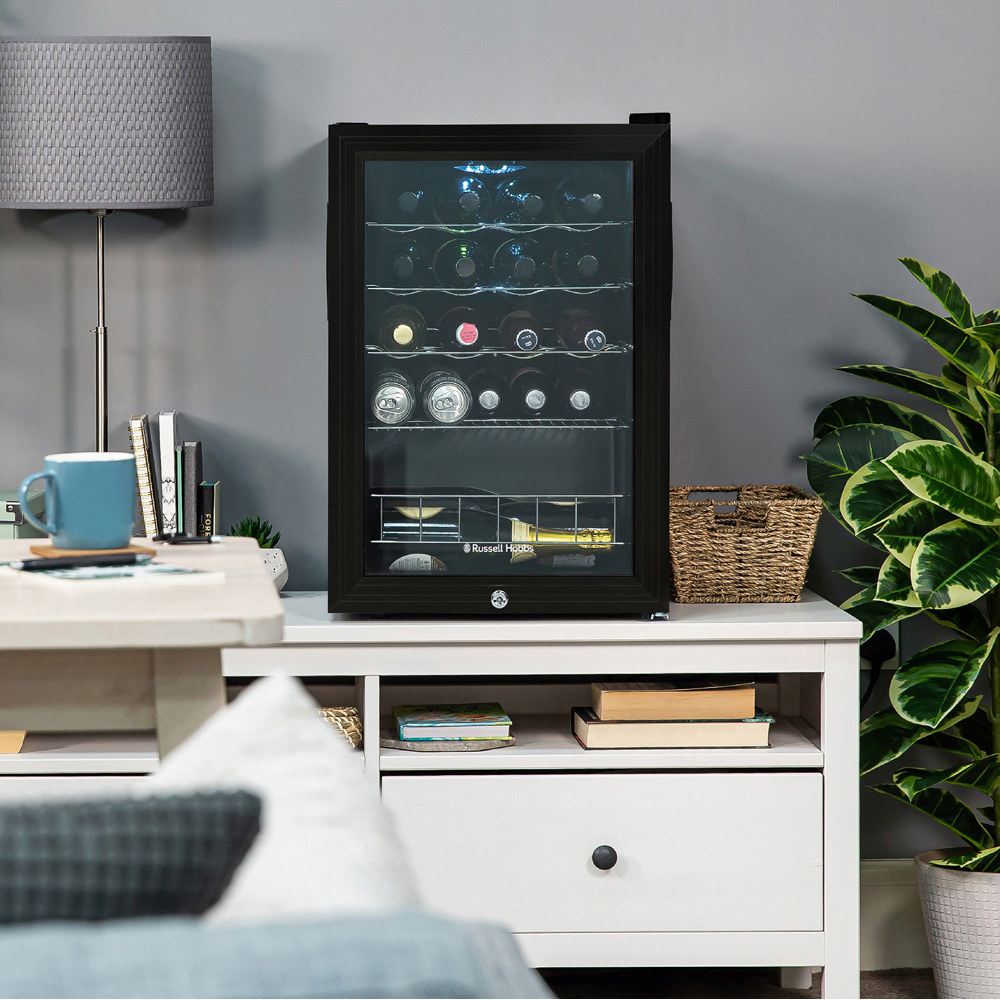 Elevate your wine storage experience with the Russell Hobbs RHGWC4B-LCK Black 20 Bottle Lockable Wine Cooler. This sleek 62L cooler can accommodate up to 20 75cl bottles, providing ample space for your favourite Riesling, Rioja, or any other wine of your choice. The temperature range of 5 to 18°C allows you to keep your reds at an optimal coolness and your whites refreshingly crisp. The stylish design, featuring a glass front, chrome shelving, and internal LED light, ensures that your collection is beautifully showcased. Additionally, the slide-out shelves and mechanical lock offer both convenience and security for your valuable bottles. The reversible door and adjustable feet allow for seamless integration into any living space, while the adjustable thermostat simplifies the process of creating the perfect storage conditions for your wines. Moreover, the low 40dB noise level and A-grade energy efficiency rating ensure minimal disturbance and cost-effectiveness. This wine cooler comes with a one-year guarantee, providing assurance that assistance will be readily available if needed.
