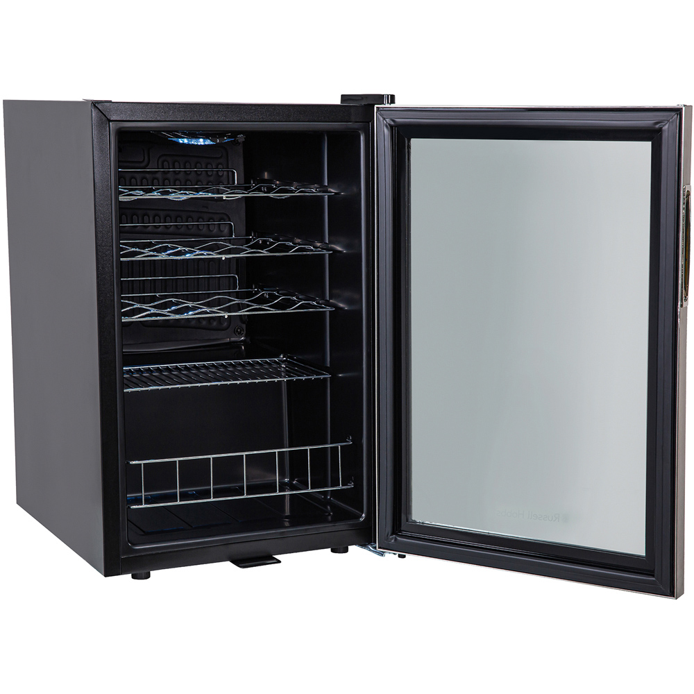 Elevate your wine storage experience with the Russell Hobbs RHGWC4SS-LCK Stainless Steel 20 Bottle Lockable Wine Cooler. This sleek 62L cooler can accommodate up to 20 75cl bottles, providing ample space for your favourite Riesling, Rioja, or any other wine of your choice. The temperature range of 5 to 18°C allows you to keep your reds at an optimal coolness and your whites refreshingly crisp. The stylish design, featuring a glass front, chrome shelving, and internal LED light, ensures that your collection is beautifully showcased. Additionally, the slide-out shelves and mechanical lock offer both convenience and security for your valuable bottles. The reversible door and adjustable feet allow for seamless integration into any living space, while the adjustable thermostat simplifies the process of creating the perfect storage conditions for your wines. Moreover, the low 40dB noise level and A-grade energy efficiency rating ensure minimal disturbance and cost-effectiveness. This wine cooler comes with a one-year guarantee, providing assurance that assistance will be readily available if needed.