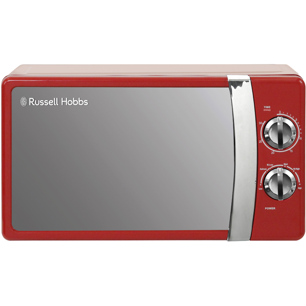 The Russell Hobbs RHMM701R-N Red 17L Colours Plus Manual Microwave 700W design with practical functionality, making it an ideal addition to any kitchen. With its modern, sleek appearance, this microwave not only enhances the aesthetic of your countertop but also offers versatile cooking options. Boasting a 17-litre capacity and 700W of microwave power, it is capable of handling a variety of cooking tasks. It features five power levels that allow you to adjust the intensity of heating according to your needs. It includes a defrost setting, which saves time by allowing you to cook meals straight from the freezer. It can accommodate a 10.5-inch round plate. It is easy to clean a microwave that can simply be wiped with a damp cloth.