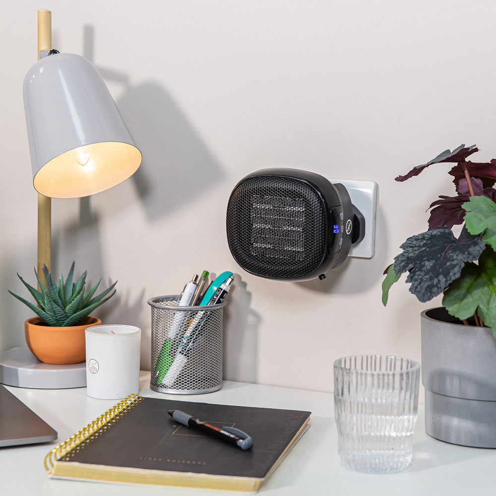Embrace warmth and comfort with the Russell Hobbs RHPH7001 Black Ceramic Plug Heater 700W. Its compact size allows for easy transport, it fits neatly in your bag for on-the-go heating. It delivers up to 30 degrees Celsius of heat with its 700W power output, featuring 2 fan speeds to suit your preference. The built-in adjustable thermostat ensures you maintain the ideal temperature effortlessly. Ideal for even larger spaces, its 12-hour timer allows you to schedule heating according to your routine. For added convenience, it includes a night light feature that offers subtle illumination during twilight hours. For added peace of mind, it comes with a one-year guarantee, plus an extra year upon registration.