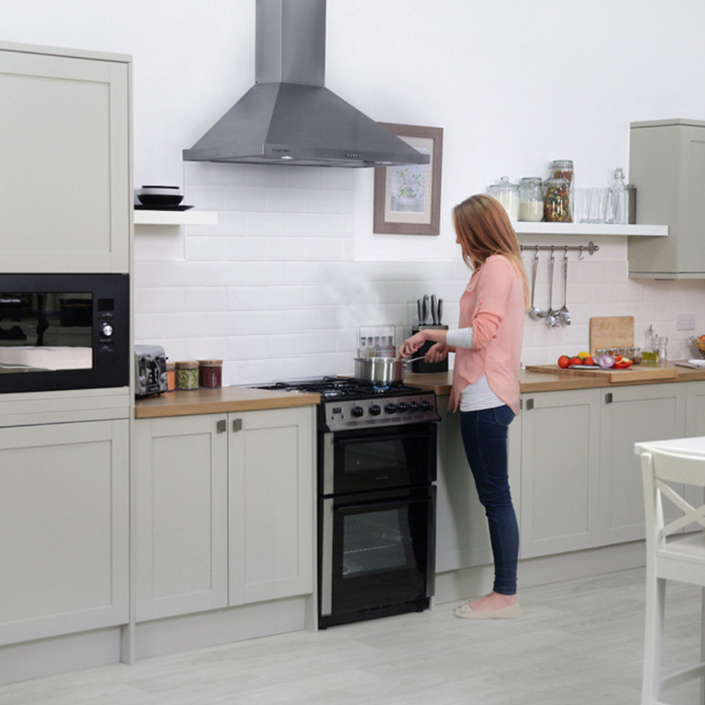 Equip your kitchen with the best with this Russell Hobbs RHSCH901SS-M Stainless Steel 90cm Wide Chimney Cooker Hood. With sleek housing, this chimney cooker hood will look stylish in any household. Designed to be functional and efficient, this cooker hood is the perfect addition to your kitchen. If you're a fan of frying fish or sizzling meats on high heat, this cooker hood will quickly clear the air of steam and odours with the three-speed settings to suit your needs. This model clears up to 440m³ air per hour, making it perfect for medium-sized kitchens. Plus, the cooker hood fits perfectly over a standard-sized hob at 90cm wide. The controls make the cooker hood super easy to operate with the touch of a button. This model also features two energy-efficient cool white LEDs to help illuminate your hob whilst cooking your favourite meals. For added versatility, you can choose an external extraction or recirculation set-up for your cooker hood. There are also durable and easy-to-maintain aluminium filters which are easy to wash and small enough to fit in a dishwasher. This cooker hood comes with a one-year guarantee with an additional year upon registration. Plus, you can also purchase an extended guarantee. Includes 1 x ducting kit.