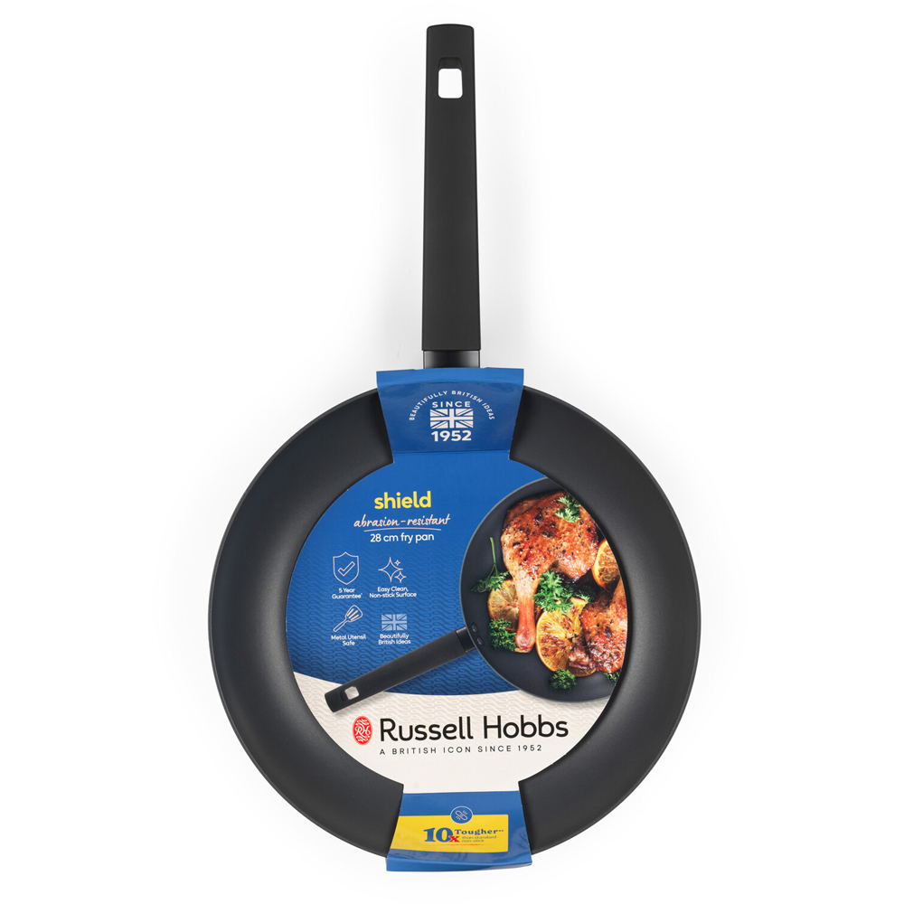 Cook delicious meals with the Russell Hobbs Shield Frypan. Designed for practicality, this frying pan features a non-stick coating that allows for easy cooking and cleaning, Its soft-touch handles protect your hands from accidental burns whilst its metal utensil-safe nature offers added convenience, so you easily enjoy healthy home-cooked meals with your family.