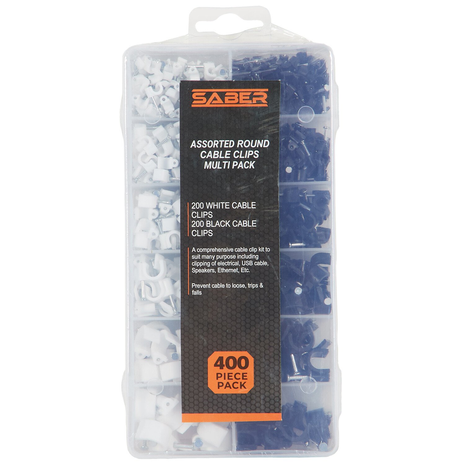 Keep cables neat and organised with this Saber Assorted Round Cable Clips Multipack. Containing an assortment of sizes in both black and white, you can easily find the perfect fit for your space, while helping them blend in.