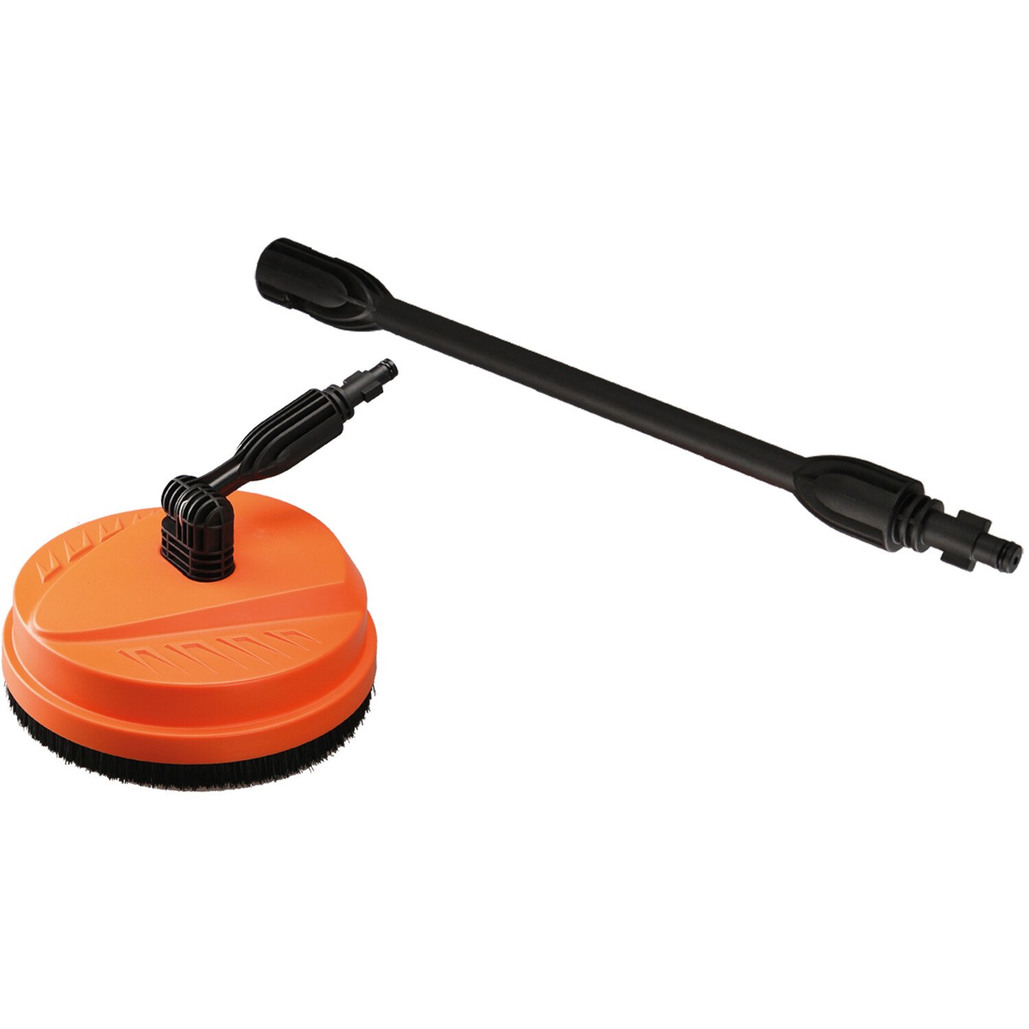 Maintain patios and walls using this Saber Pressure Washer Patio Brush Kit. The cleaner provides a high-pressure, high-quality finish on any patio. Easy to use, this kit includes a patio cleaner and a lance attachment for comfortable use. It is compatible with Saber 1200W, 1400W, 1600W and 2000W pressure washers.