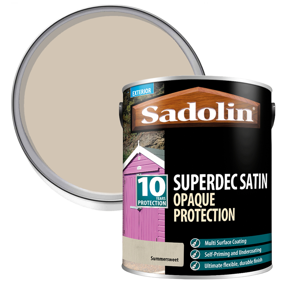 Revitalise your exterior surfaces with Sadolin Superdec Satin, a durable, water-based wood protection suitable for a variety of materials, including wood, plastic, steel, cladding, concrete, masonry, and doors and windows.