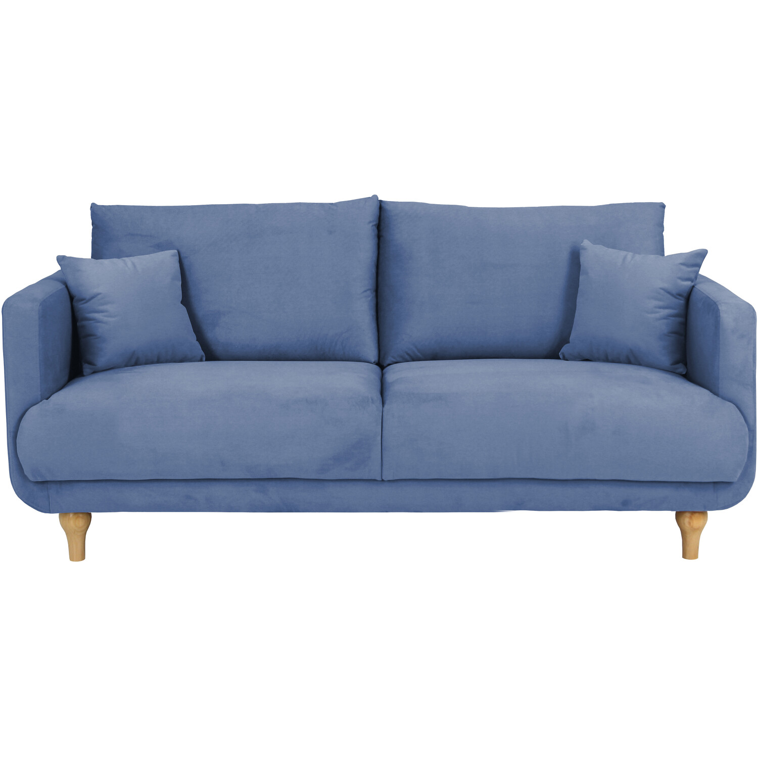 The Safa 3 Seater Blue Fabric Sofa is a beautifully modern addition to your living room and a practical seating solution, offering a great focal point and a wonderful, comfortable place to put your feet up with the family after a long day. The soft and sumptuous back and base cushions provide plenty of support to your body as you lounge around, and the contemporary wooden legs give the settee a contrasting effect. The sofa includes two accent cushions for an inviting look, giving your living room a great finishing touch.