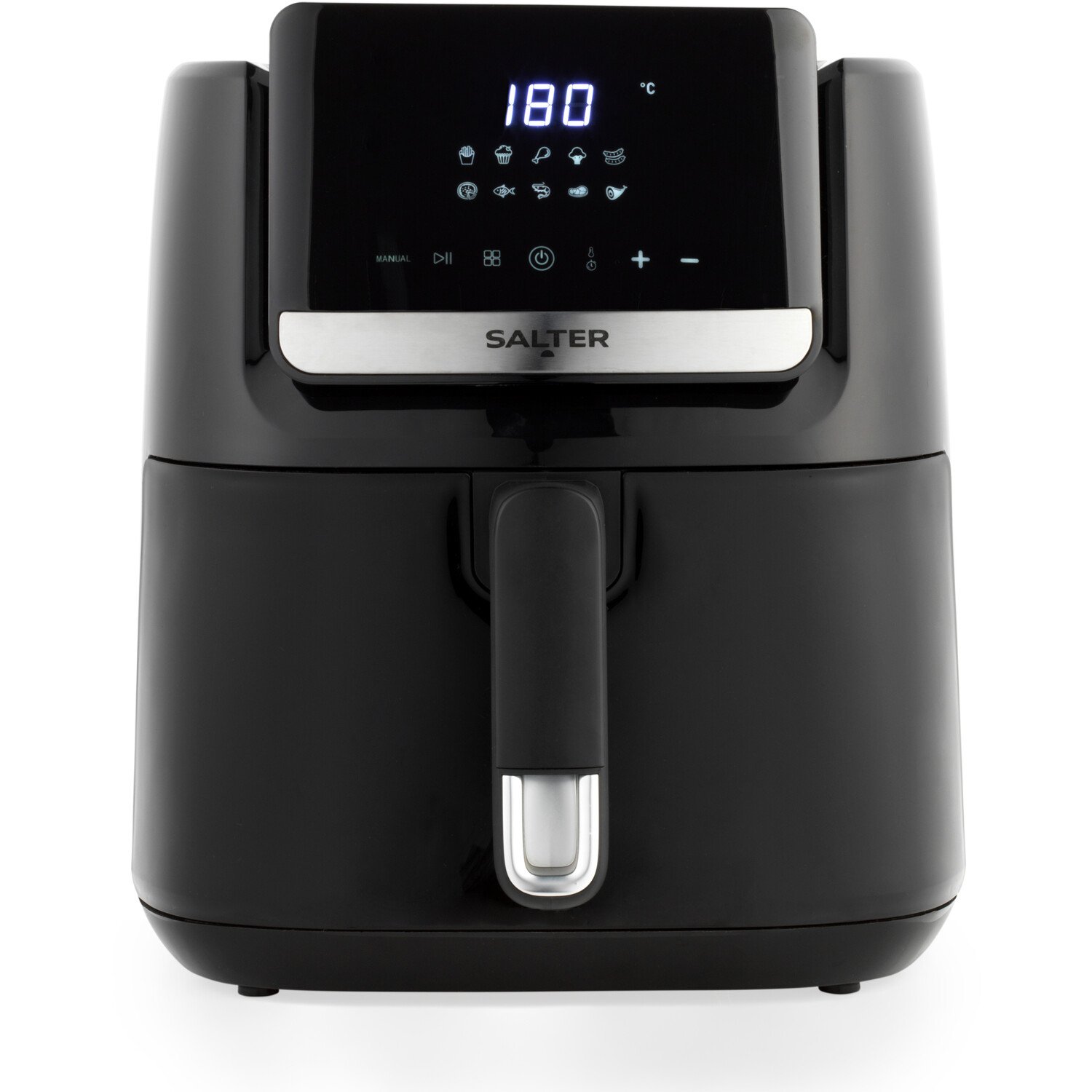 Enjoy quick and healthy meals every day with the Salter 6.5L Digital Air Fryer, designed with a 60-minute timer so you can cook your favourite fried foods to perfection with little to no oil for low-fat cooking options! Using hot air circulation technology, this air fryer will evenly cook your food, providing a crispy, golden texture in less time than a conventional oven. Perfect for cooking a variety of foods, you can choose from 11 cooking functions including air fry, roast, bake, and more for everyday convenience. With its 6.5l capacity, it's ideal for couples and families and can help to save up to 69% on your energy bills compared to just using your oven.