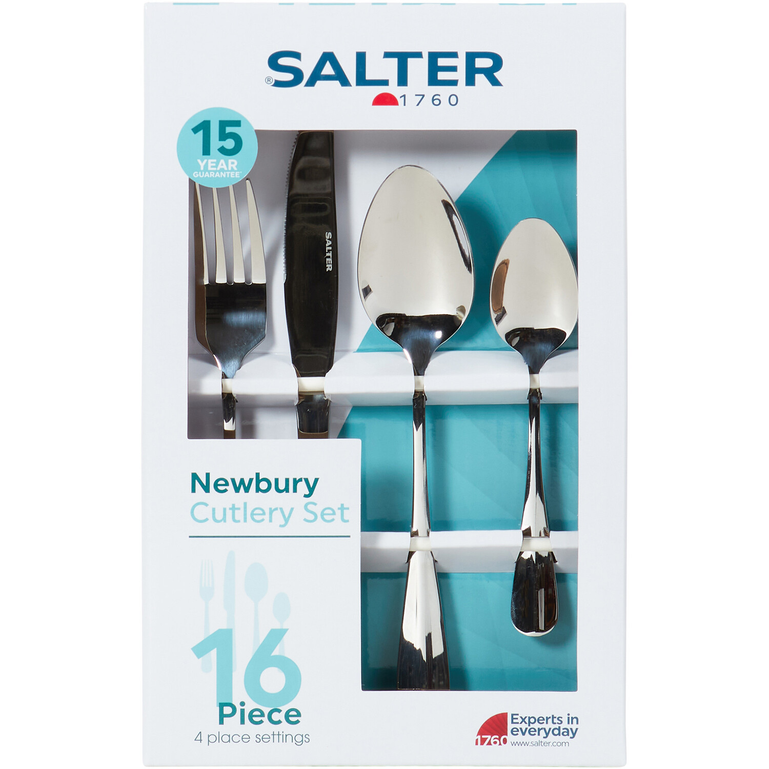 Perfect to create an elegant dinner setting, this Salter Newbury 16 Piece Cutlery Set will make a charming addition to your kitchen. This set includes four forks, knives, tablespoons and teaspoons – suitable for a family of four. This set is made using high-quality stainless steel with a mirrored polish, so rest assured it's long-lasting and will blend into any kitchen decor with ease. Being dishwasher safe, it's easy to clean too.