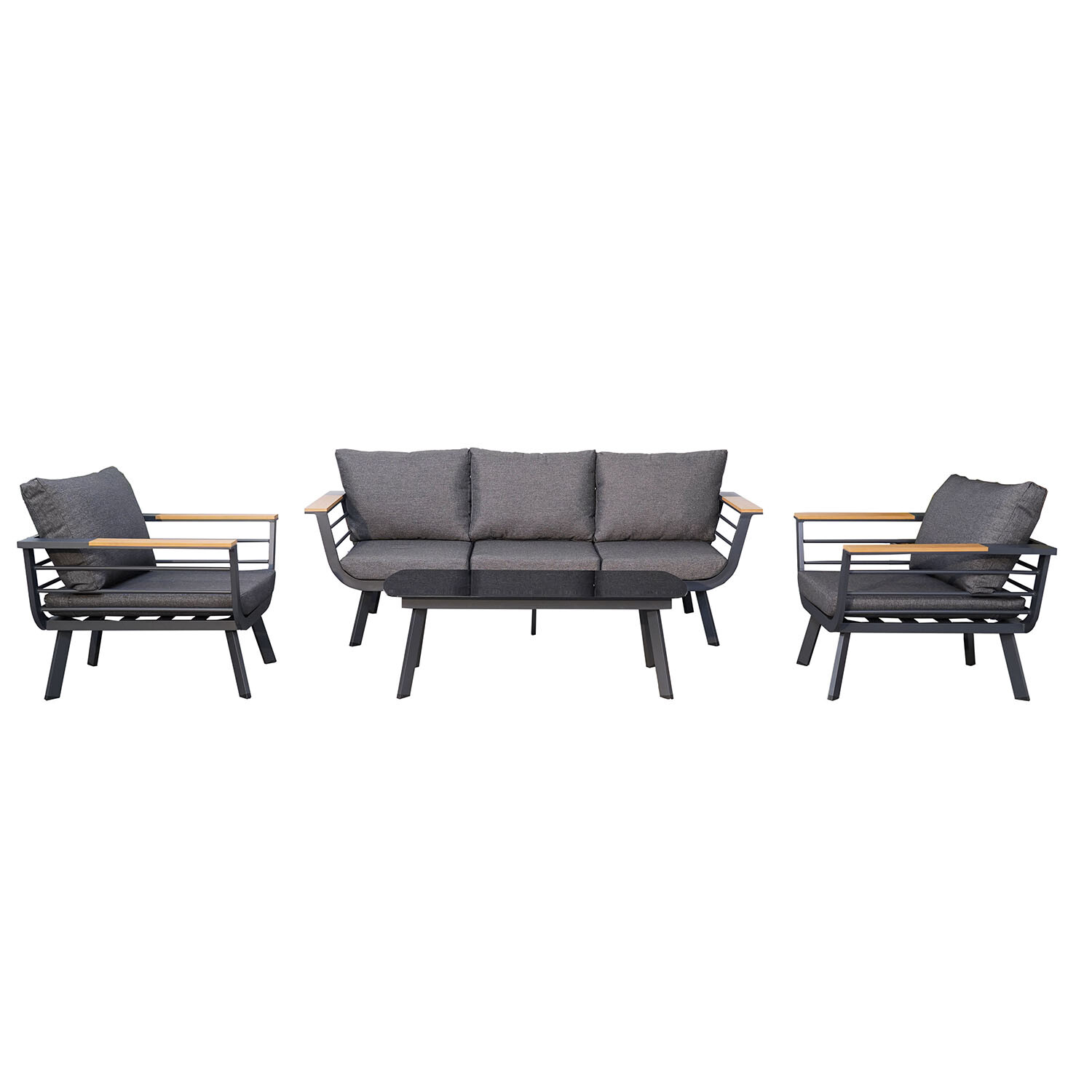 - Includes: 1 x Sofa, 2 x Chairs, 1 x Table