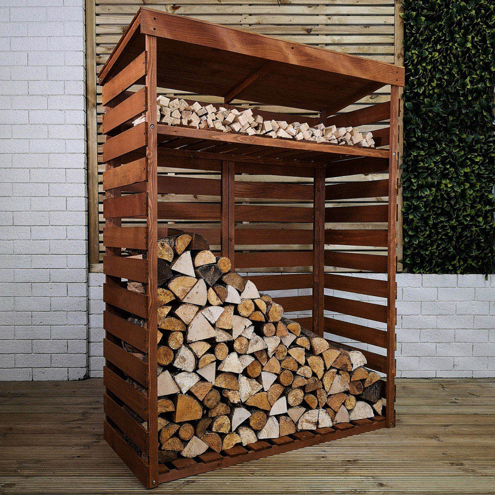 Store your pile of logs in a classy way with this Wooden Garden Patio Log Store Shed by Samuel Alexander. This log store is the perfect way to keep a well-stocked reserve of wood for any occasion, whether it's for the log fire in the living room in wintertime or those cool night gatherings around the garden fire pit. This storage shed ensures the wooden logs are appropriately stored in a dry, sheltered area to provide an optimum and efficient burn. With a practical design, the log store features a raised floor to help prevent moisture from seeping in and a sloping roof to allow the rain to run off for maximum protection from the elements. The natural wooden frame offers a modern look and can complement any garden, or any other outdoor setting. With the slated design it helps air to flow and maintain circulation for keeping the area clean. This store shed has a wooden upper shelf to keep separate size logs apart. It is supplied flat packed and self-assembly is required. Also, it is suitable for outdoor use. Product dimensions- Total Height: 156cm Total Width: 117cm Depth from front to back: 52cm Height of bottom storage section: 117cm Height of top storage section: 38cm. All dimensions are approximate.