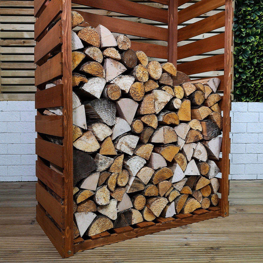 Store your pile of logs in a classy way with this Wooden Garden Patio Log Store Shed by Samuel Alexander. This log store is the perfect way to keep a well-stocked reserve of wood for any occasion, whether for the log fire in the living room in wintertime or those relaxed night gatherings around the garden fire pit. This shed ensures the wooden logs are appropriately stored in a dry, sheltered area to provide an optimum and efficient burn. With a practical design, the log store features a raised floor to help prevent moisture from seeping in and a sloping roof to allow the rain to run off for maximum protection from the elements. The natural wooden frame offers a modern look and can complement any garden or other outdoor setting. The slated design helps airflow and maintains circulation to keep the area clean. It is supplied flat-packed, and self-assembly is required. Also, it is suitable for outdoor use. The Total Height is 157cm, the Total Width is 88cm, the Depth from front to back is 43cm, and the Height of the storage area is 148cm. All dimensions are approximate.