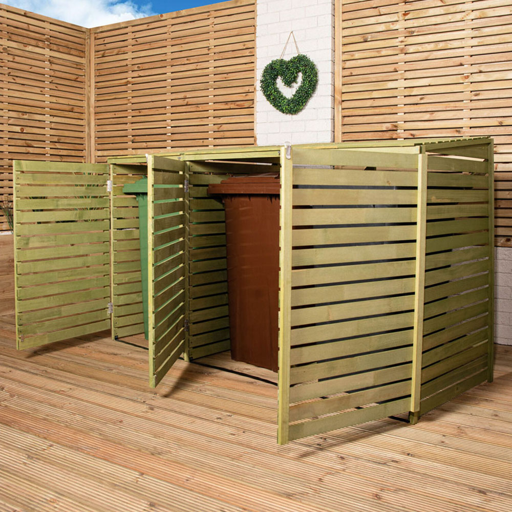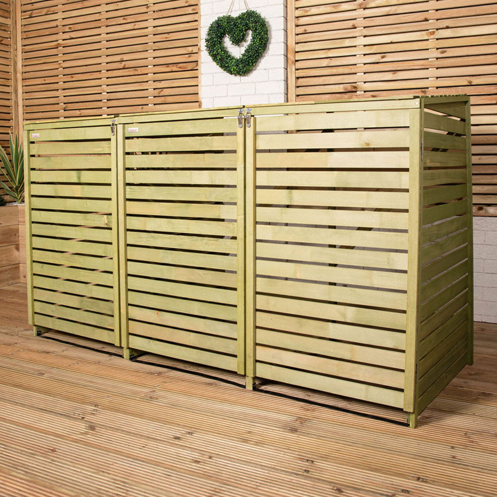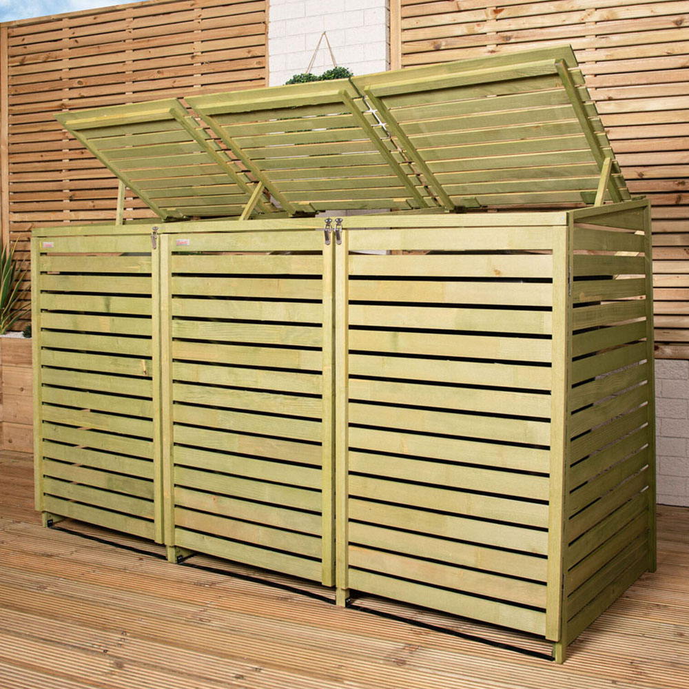- Designed to neatly hide away 3 standard-sized wheelie bins
