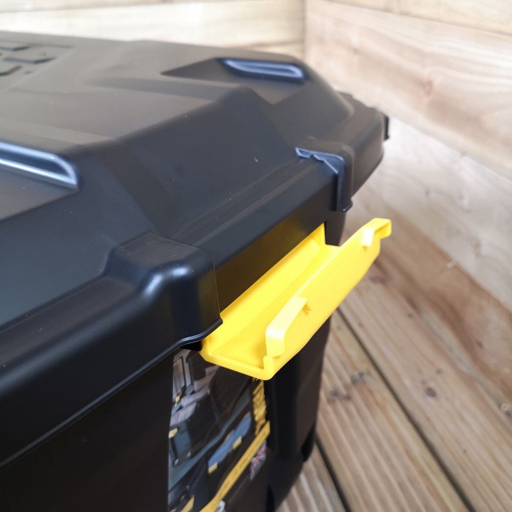 This pack of 3 heavy-duty storage trunks is made from super durable, strong plastic and is equipped with 4 black wheels each for easy movement. With a 75l capacity, they're perfect for organising and storing a variety of items. The trunks have a clip-on lid and a stackable design, making them easy to store in a variety of locations. The lid is also lockable, giving you added security for your items. The design of the trunk is nestable, so when it's not in use, you can easily store it in a compact space, one inside the other. The trunk measures 40cm in height, 77cm in length, and 42cm in width, making it a versatile storage solution for any space. Whether you need to store seasonal decorations, sports equipment, or other household items, these storage trunks are up to the task!