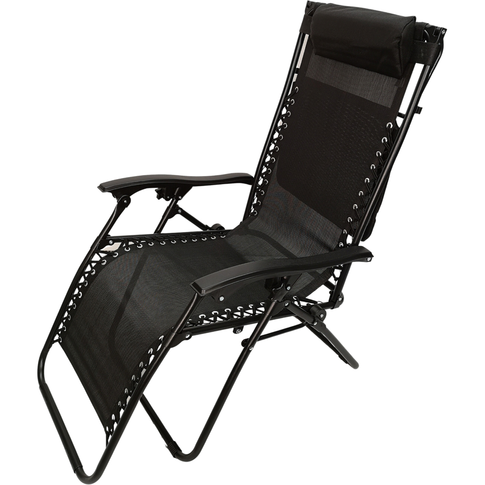 Lie back and relax in your garden with this Multi Position Sun Lounger. This reclining chair lounger is perfect for the garden or patio. It is made with a sturdy powder-coated black metal frame and a durable black textile fabric. This chair lounger features a removable pillow on the headrest for extra support and a manoeuvrable canopy. The design is operated by weight alone; simply take a seat and lie back as the back goes down, your feet will raise and lift you into a comfortable reclining position, and the natural movement of sitting up will prompt the chair to move with you. The chair also features a detachable cup holder tray that fixes onto the side. When not in use, this chair can be easily folded down to a compact size to be stored away. The maximum weight that it can accommodate is 120kg. Fully reclined dimensions are H110 x W64 x L160cm; when folded down, they are H90 x W15 x L67cm. Protect your garden furniture with our durable and waterproof covers. Explore our wide range of heavy-duty Garden Furniture covers to find the perfect fit for your needs.