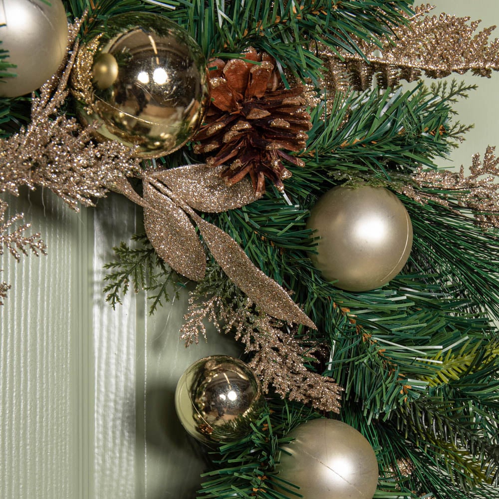 Samuel Alexander Christmas Wreath with Gold Baubles Pinecones and Glitter Berries 60cm