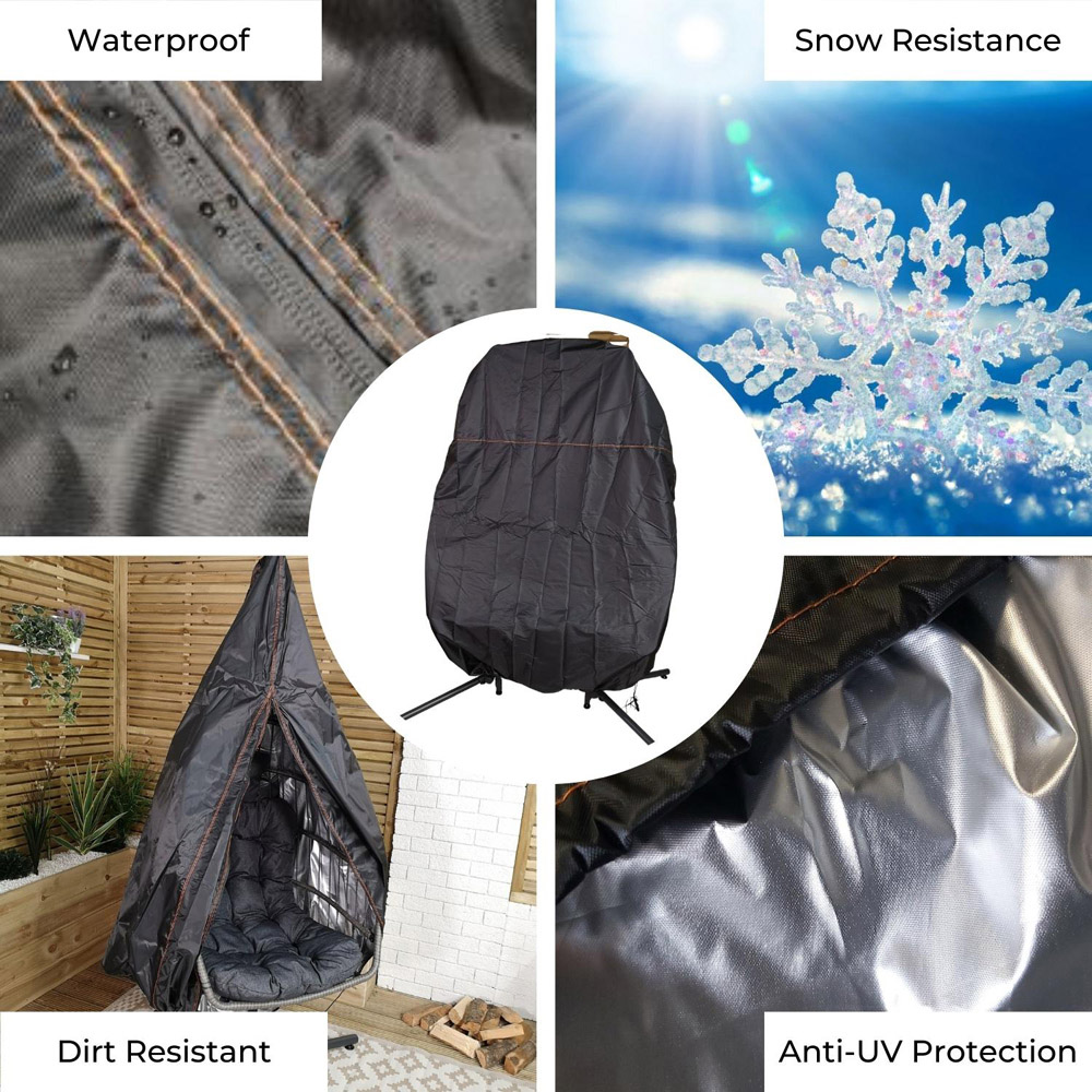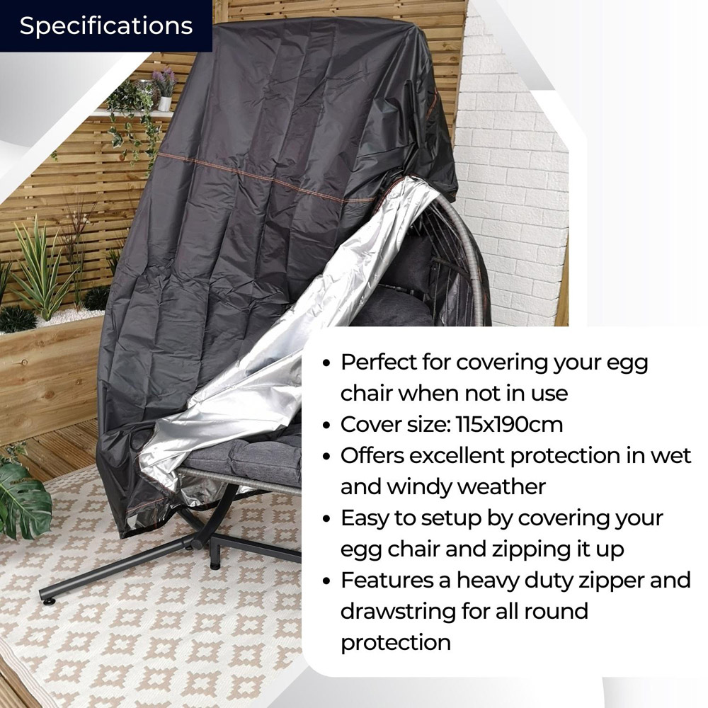Protect your double egg chair from harsh weather conditions with the 200 x 200cm Samuel Alexander Double Egg Garden Chair Cover. Whether you own a standing egg chair or a hanging swing chair, this cover is specifically designed to fit securely and offer exceptional protection against outdoor conditions. Crafted from heavy-duty materials, this cover is both waterproof and anti-UV, guaranteeing that your chair remains shielded in any weather. Featuring effortless cleaning process - simply wipe down the cover with a damp cloth. No need to spend hours scrubbing or washing the chair cover, allowing you more time to relax and enjoy your outdoor space. In addition to protecting your double egg chair from weather, this cover also keeps it clean and free from debris. This is particularly crucial for hanging chairs, which tend to accumulate dust and dirt.
