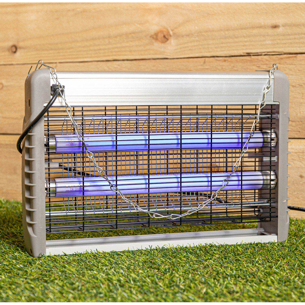 Say goodbye to unwanted insects with this efficient UV insect bug fly zapper. Designed to provide effective insect control, this zapper attracts, eliminates and traps flying pests like flies and moths, ensuring your indoor space remains comfortable and pest-free. Whether you're hosting a gathering or simply enjoying a peaceful evening, this insect zapper ensures that pesky bugs are no longer a problem. Equipped with two 10W UV tubes, tubes, this bug zapper emits a powerful UV light that effectively attracts insects from a distance, drawing them in and neutralising them with a high-voltage grid. The UV light mimics the natural light sources that bugs are attracted to, ensuring efficient and swift elimination. When the time comes to replace the UV tubes, the tubes can be replaced without the need for professional assistance. Cleaning is a breeze with the removable tray that collects dead insects, allowing you to empty it with minimal effort. This bug zapper operates without releasing harmful vapours or irritating odours, ensuring your environment remains safe, fresh and pleasant, making it a safer alternative for homes with pets, children or allergy-sensitive individuals. With a standard AC power supply, this bug zapper is ready to use in most standard households. Product Dimensions Height: 35cm, Length: 22cm, Depth: 8cm.