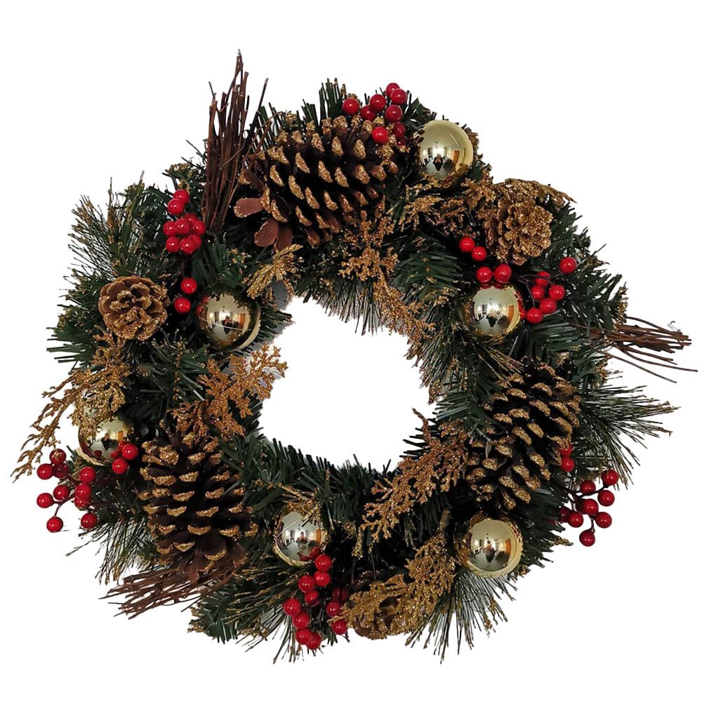 Samuel Alexander Gold Dressed Christmas Wreath with Baubles Pinecones and Berries 40cm