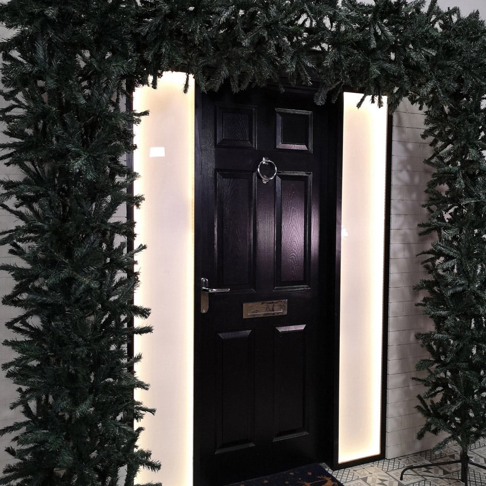 Make a grand statement this Samuel Alexander Green Artificial Christmas Tree Arch 8ft. This 8ft tall (2.4 meters) green artificial tree arch is perfect for creating a magical entrance for visitors, including Santa. The tree arch is made of PVC, giving it a realistic, bushy appearance with 1,890 tips. The branches are wrapped and can be easily folded down and arranged to achieve a full and bushy look. The tree arch comes with a green metal stand for stability, and the stand can be folded for easy storage. It also requires self-assembly and is suitable for indoor and sheltered outdoor use. Product dimensions: H2.4 x W2.2m, Pillar girth: 50cm.