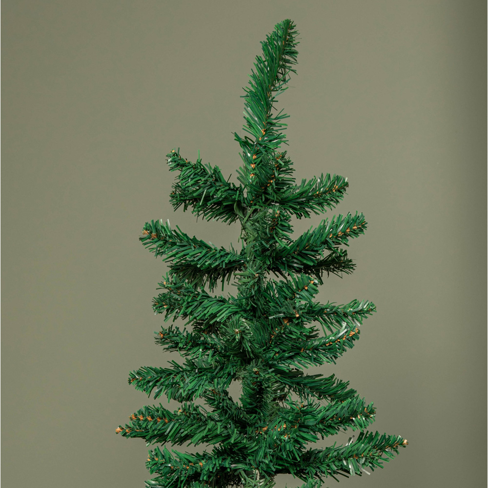 Elevate your Christmas decorations with the Samuel Alexander Green Pencil Artificial Christmas Tree with Green Metal Stand 5ft. This artificial tree is an excellent choice for any display, whether by the fireplace, in the window, or showcased in the hallway. It brings a joyous and festive cheer to your home, welcoming the guests with the cheerful warmth of Christmas. Bringing trees indoors has been a tradition for thousands of years to celebrate winter festivals, symbolizing that spring is just around the corner. This tree stands tall at 5ft and offers ample space to hang decorations and lights. The tree comes in sections and features 236 tips with PVC-hinged branches, making it easy to achieve a full, lush look. It includes a green metal base stand, which folds down for convenient storage. Please note that the branches should be fluffed and rearranged to achieve a realistic appearance. The tree measures five feet tall with a width of 46cm at its widest point, and the metal stand has a size of 35cm. This tree is suitable for indoor use only.