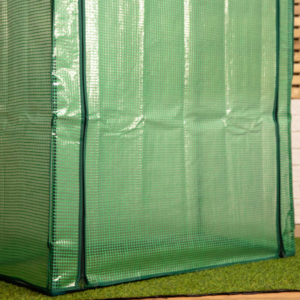 Your favourite plants will grow safely with the Green Weatherproof Cover Garden Allotment Greenhouse. It is an ideal solution for growing and protecting tomato plants and other vegetables as well. It features a weatherproof cover with 2% UV resistance which will protect plants in any weather. This greenhouse features a green powder-coated steel tube frame construction with PP connectors and a roll-up zip front panel for easy accessibility. Dimensions: 100 x 50 x 150cm. Tube size: 12mm.